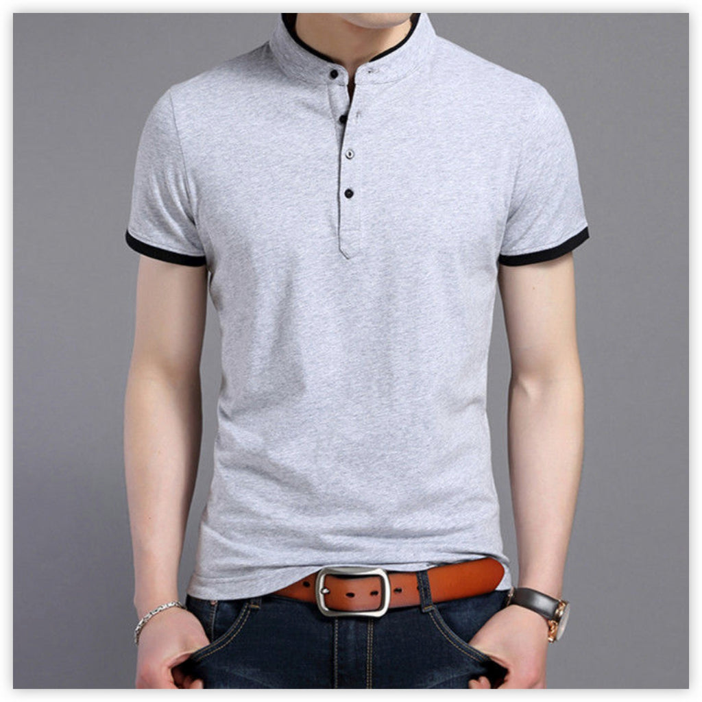 Casual Short Sleeve T Shirts Half Buttons Stand Collar Comfy Pullovers