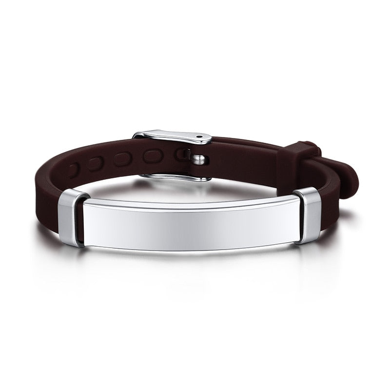 Vnox Personalize Soft Silicone Rudder Stainless Steel Kids Baby ID Bracelets