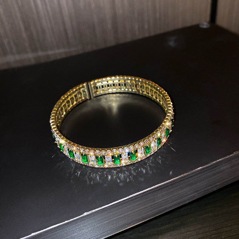 Geometric Zircon Bangles For Women Pink Green Crystal Cuff Bracelets