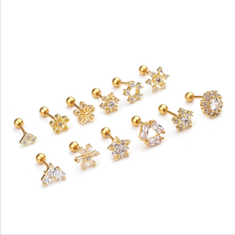 1PC Colorful Crystal Zircon Mini Stud Earrings for Women Safe Ear Cuff 20G Stainless Steel Cartilage Screw Back Piercing Jewelry