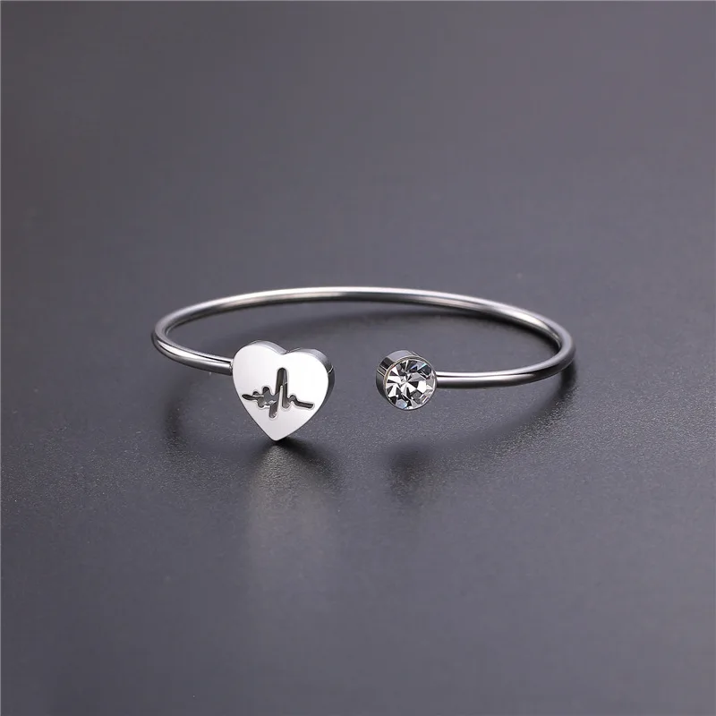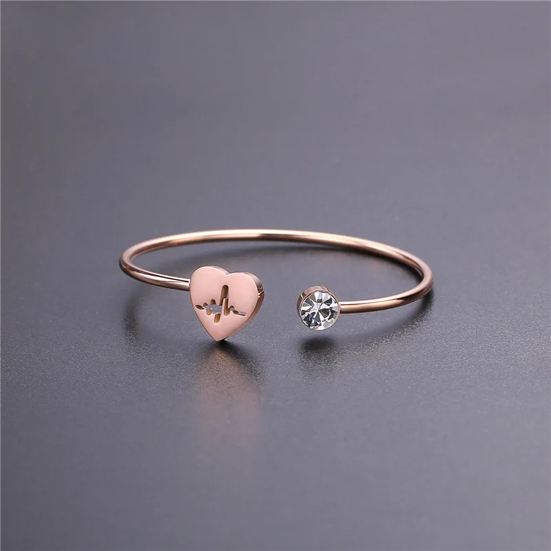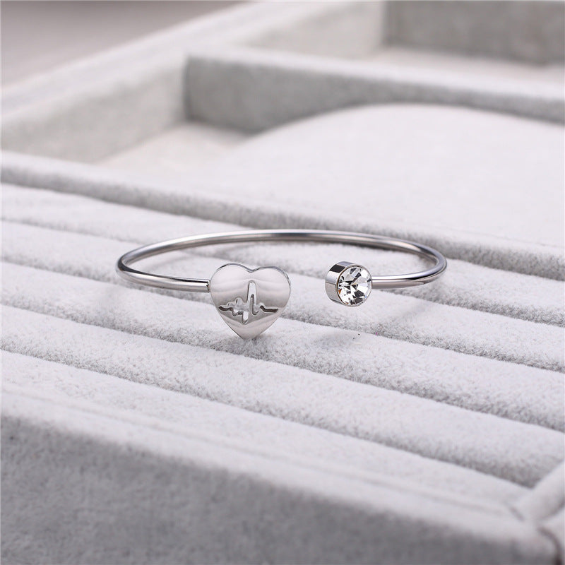 Minimalist ECG Diameter 60mm Stretch Titanium Steel bangle peach heart zircon bracelet