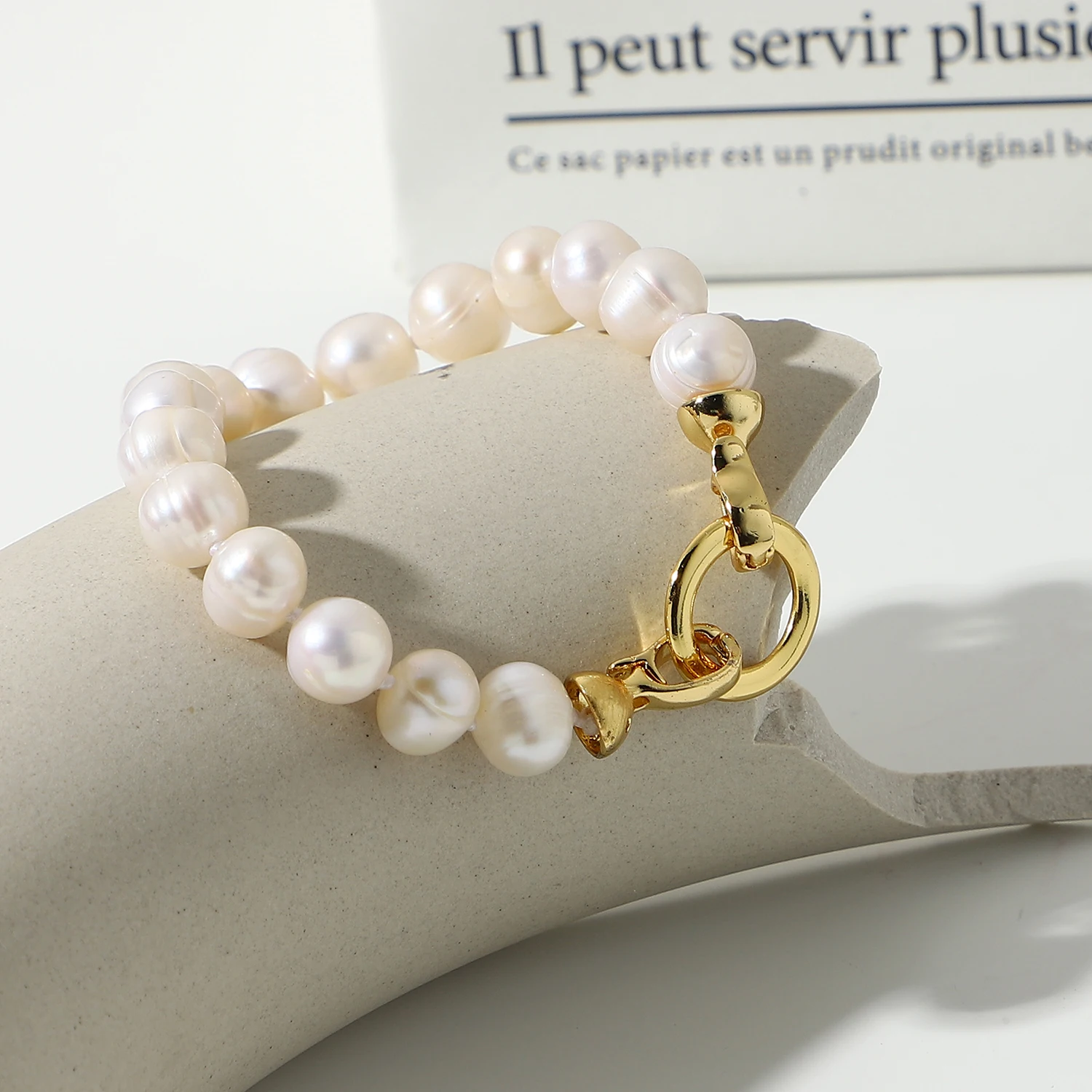 Dainty Chunky Minimalist Simple 316L Stainless Steel 18k Gold Plated Pearl Choker Cuban Chain Toggle Clasp Bracelet