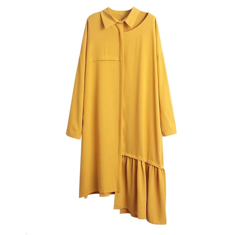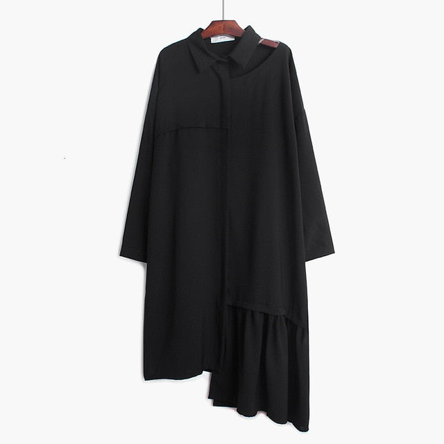 Women Spliced Pleated Irregular Oversize Dress