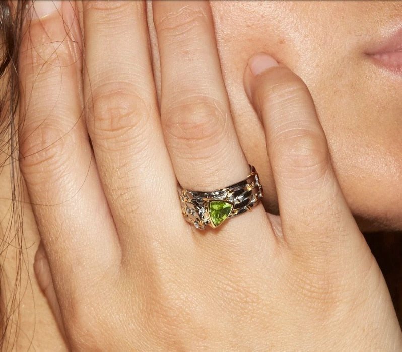 Unique Design Exaggerated Personality Black Gold Tungsten Triangle Ring