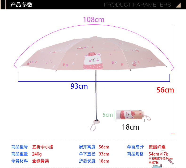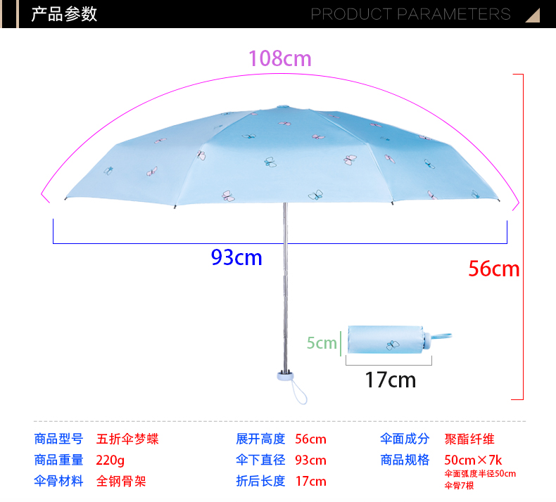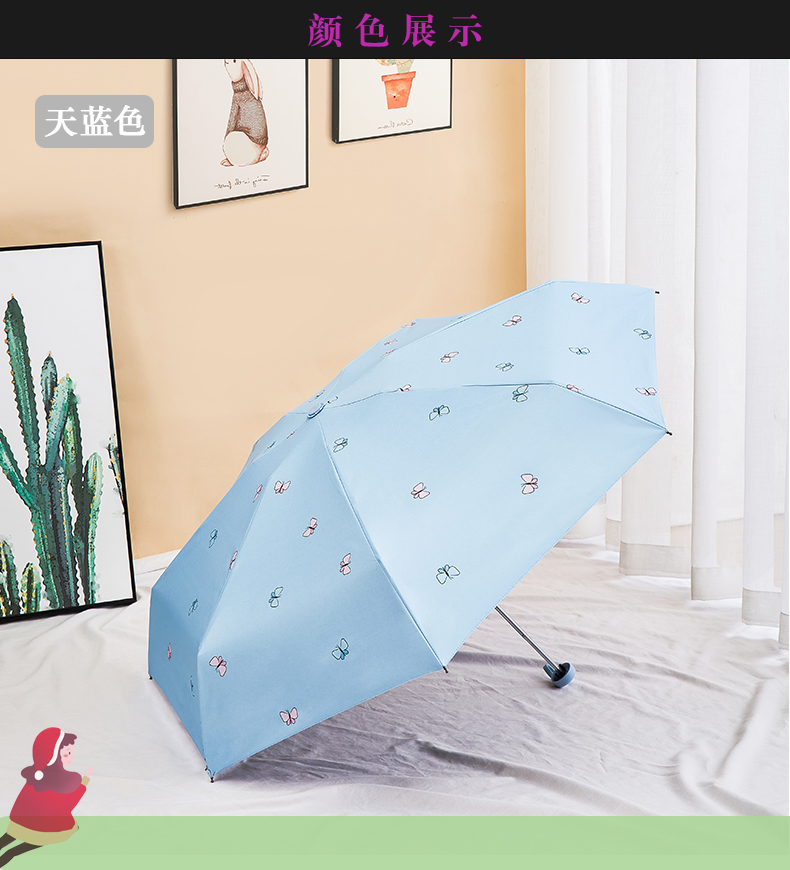 Paradise Ultra-Light Capsule Umbrella Sun Umbrella Umbrella Women's Sunny and Rain Dual-Use Five-Fold Umbrella Sun Protection UV Protection Small Portable