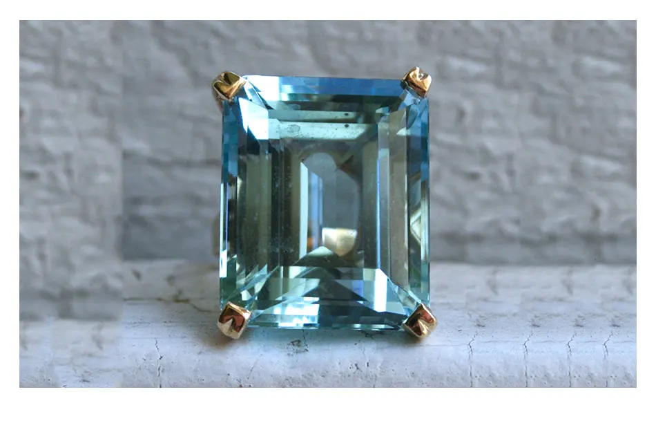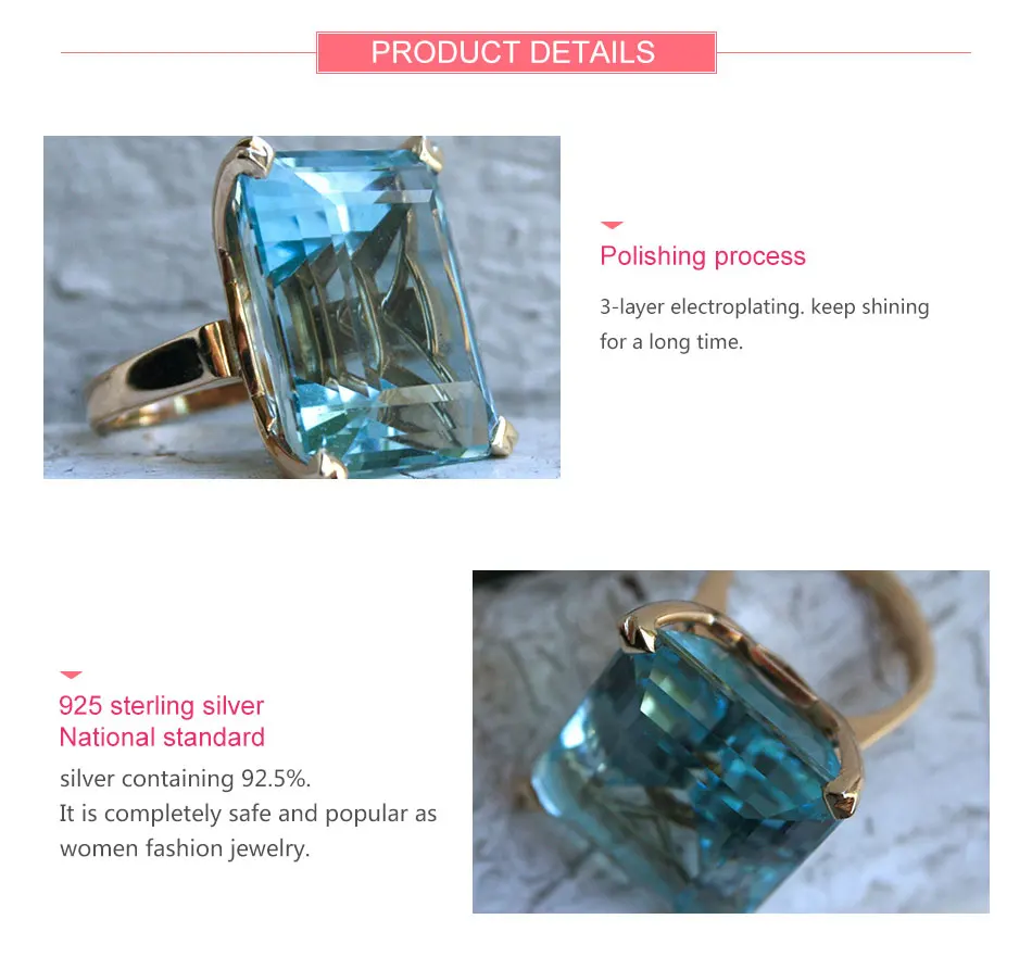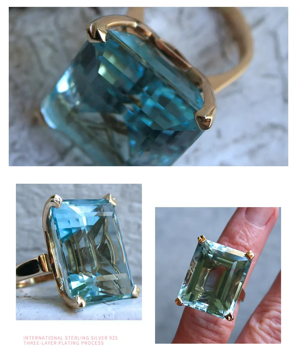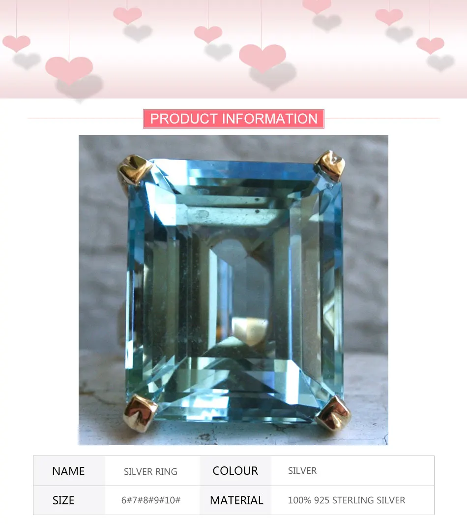 ZDADAN 925 Sterling Silver Aquamarine Gemstone Ring