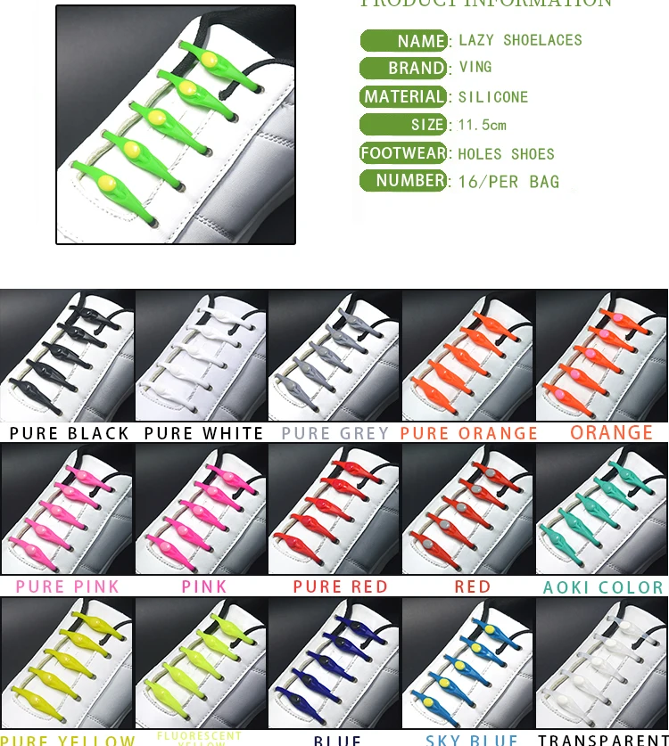16pcs Silicone Shoelaces Round Elastic Shoe Laces