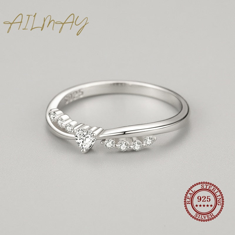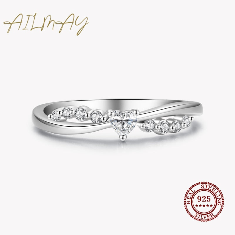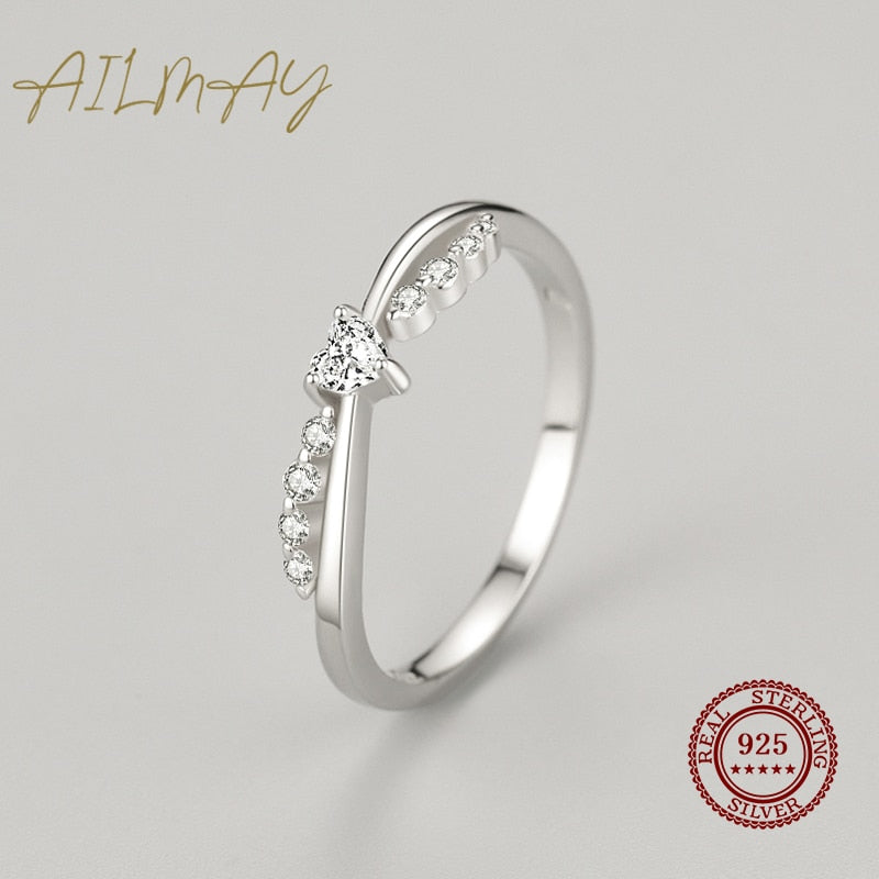 Ailmay 925 Sterling Silver Elegant Sparkling Cubic Zirconia Heart Finger Ring