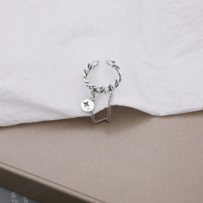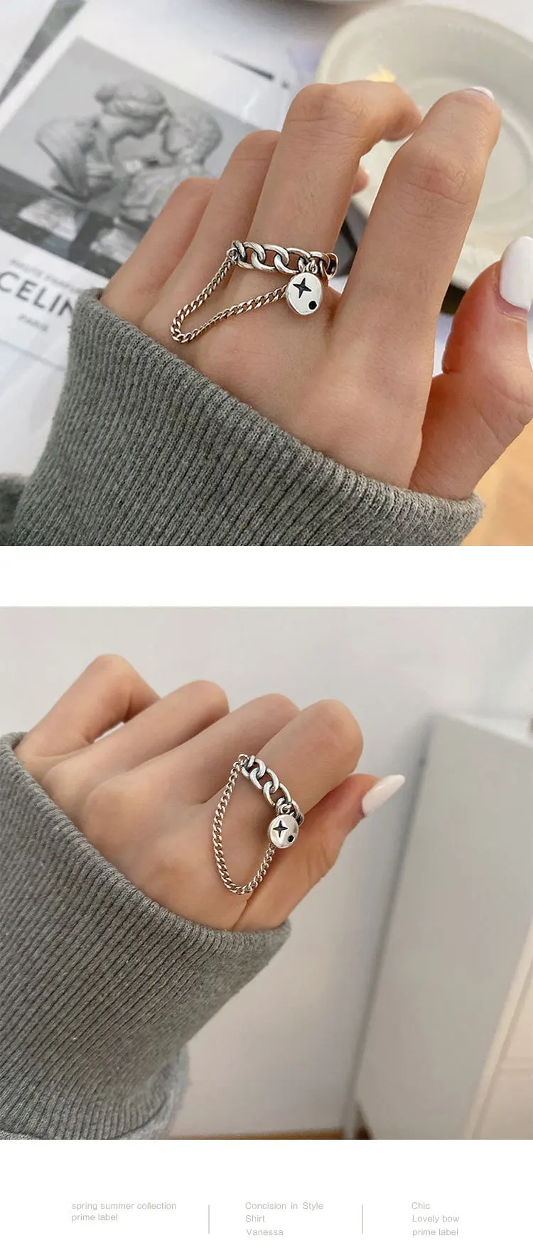 Ancient Silver Color Adjustable Chain Open Finger Ring
