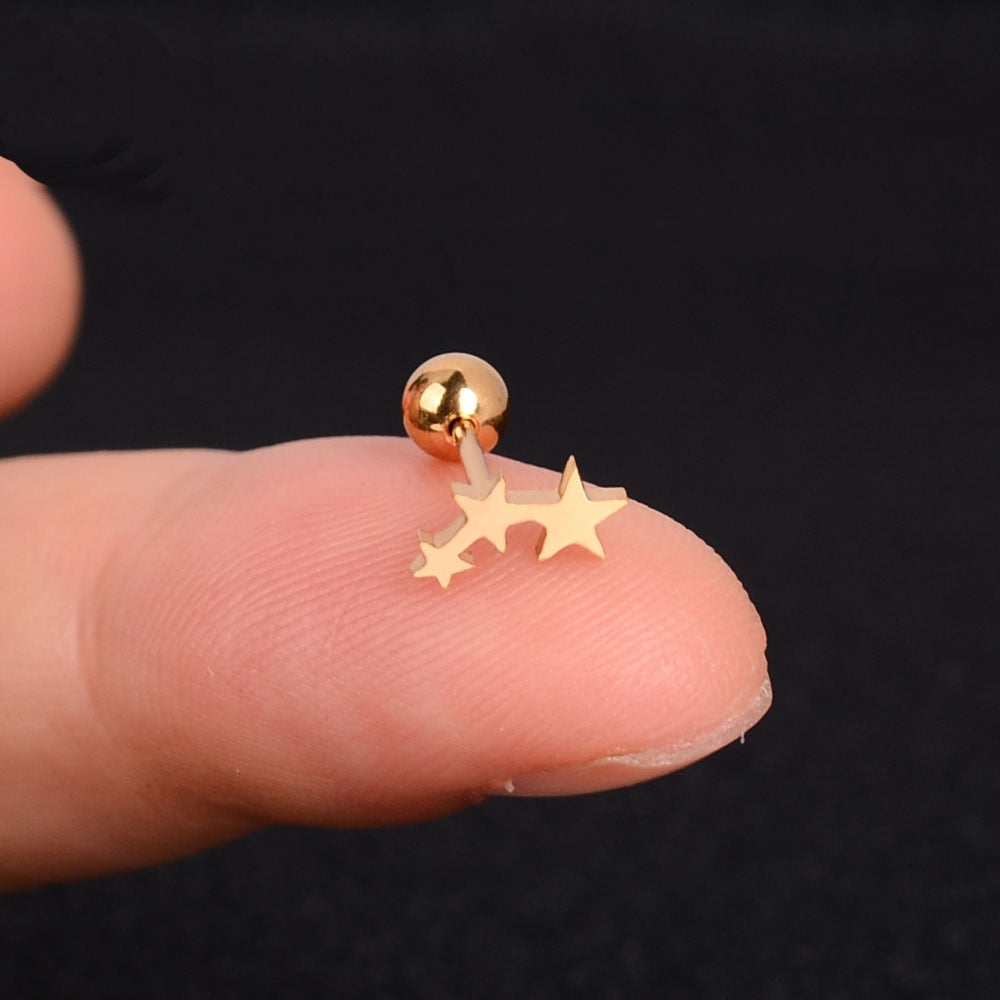 1Pcs Mini Stainless Steel Ear Tragus Cartilage Helix Piercing Butterfly Daisy Crown Snowflake Star Cross Enamel Studs Earring
