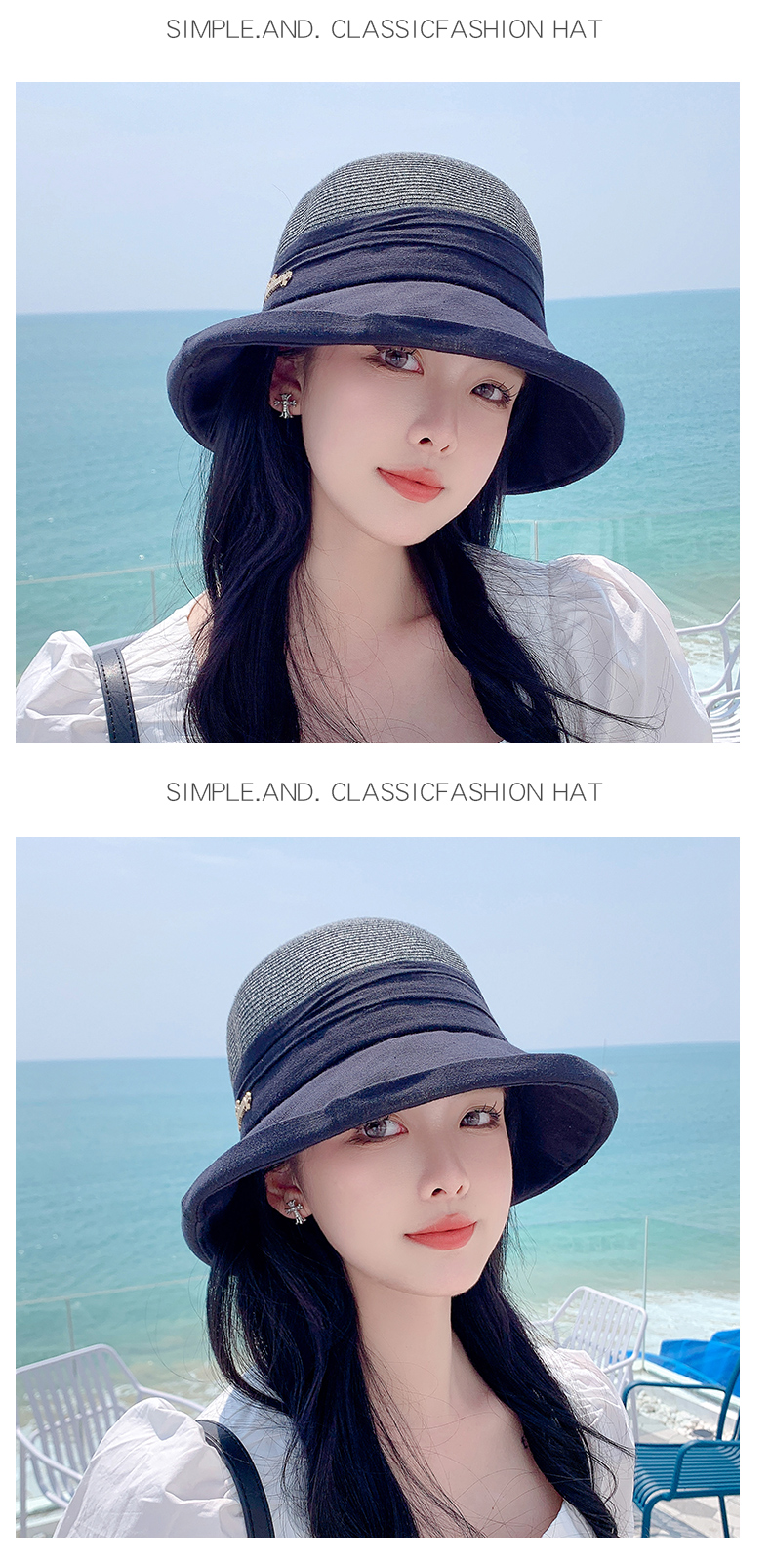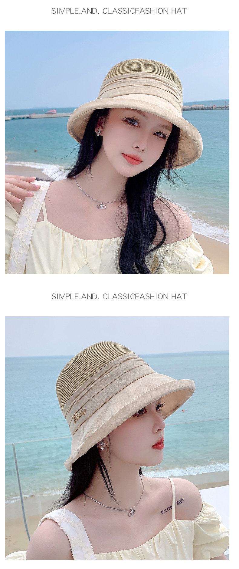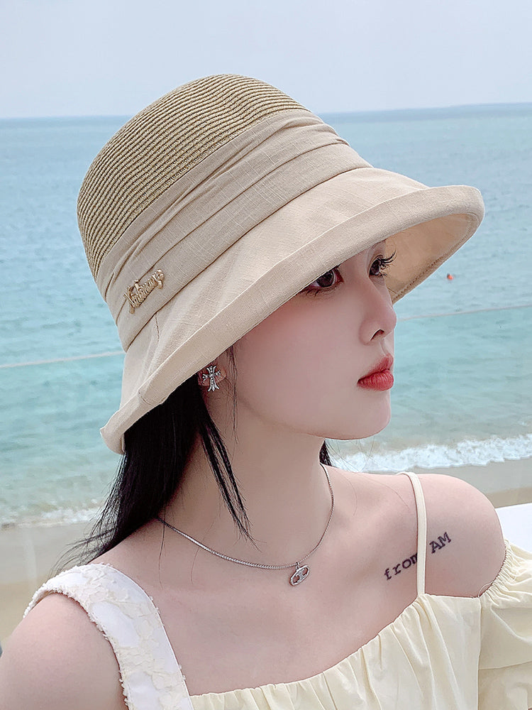 Sunshade Straw Hat Women's Spring and Summer Travel Fashionable Face-Slimming Small Curling Sun-Proof Bucket Hat 2023 New Sun Hat