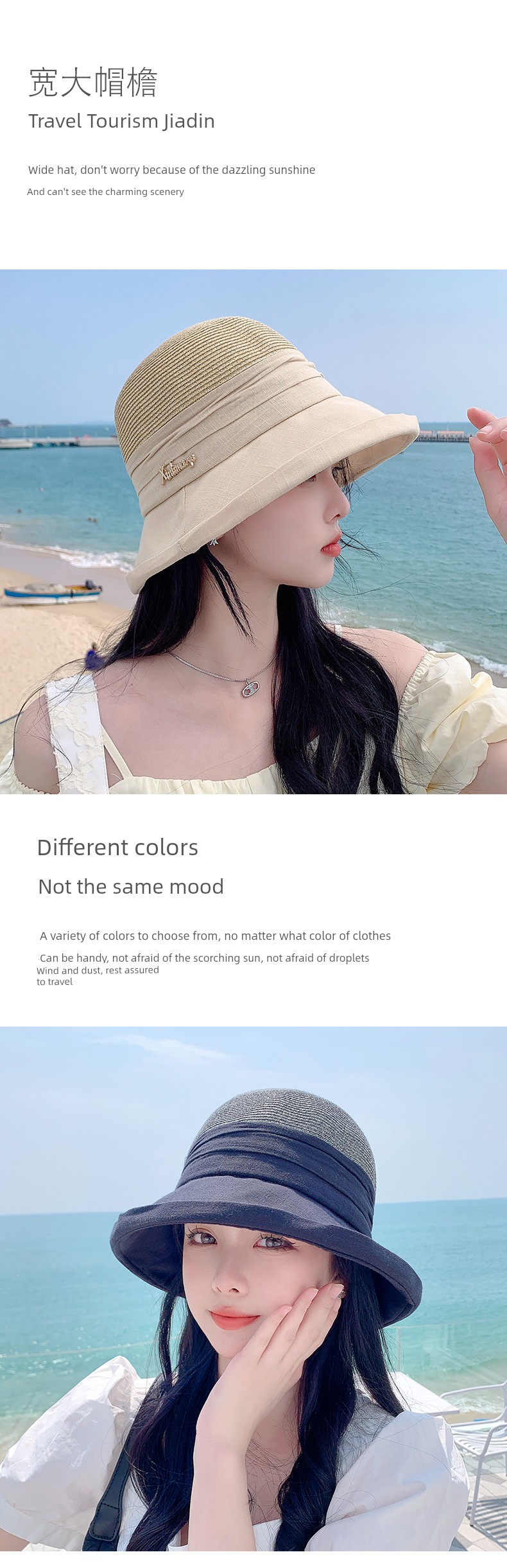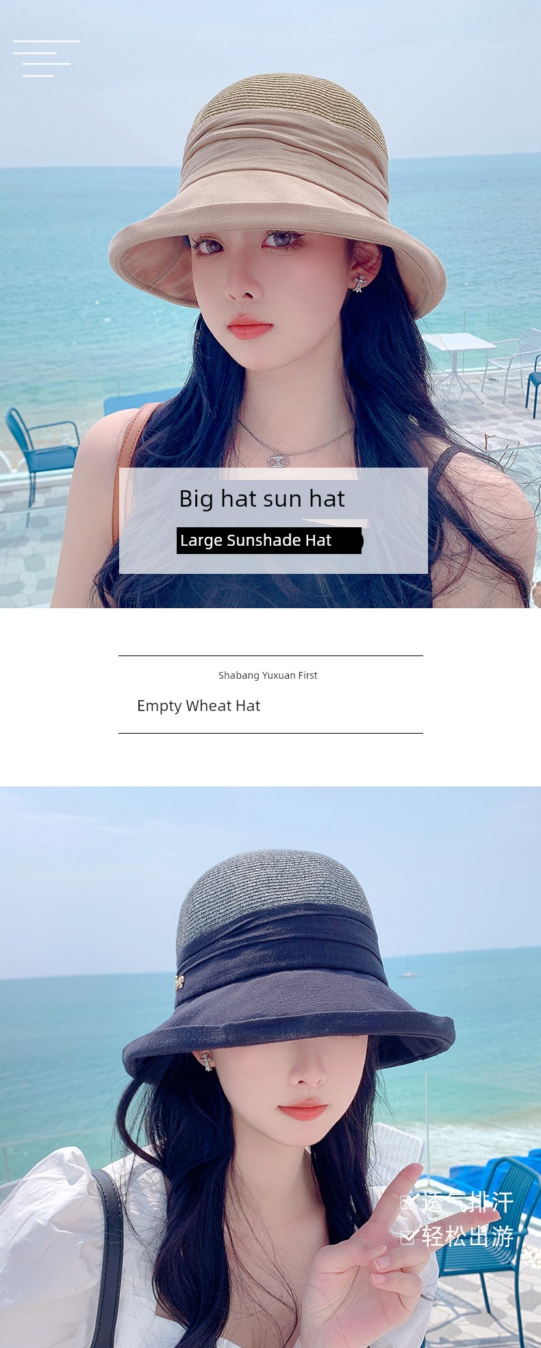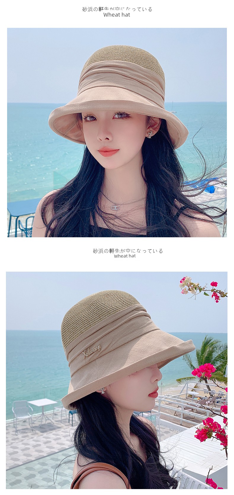Sunshade Straw Hat Women's Spring and Summer Travel Fashionable Face-Slimming Small Curling Sun-Proof Bucket Hat 2023 New Sun Hat