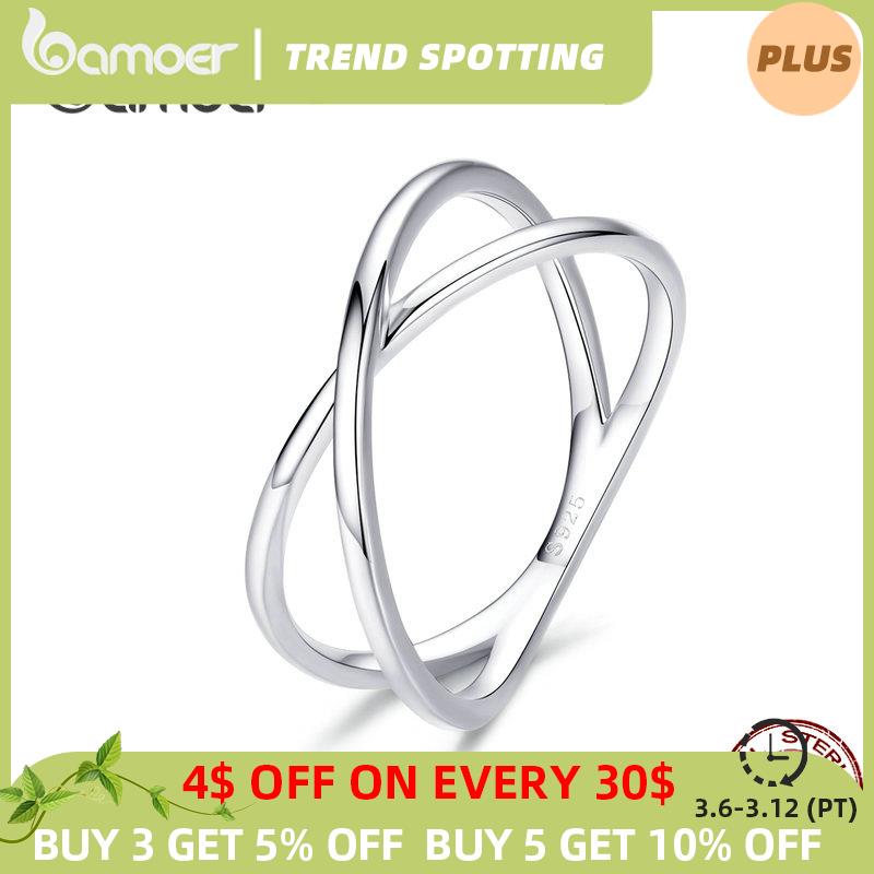 Bamoer 925 Sterling Silver Fashion CROSS Double Layer Ring