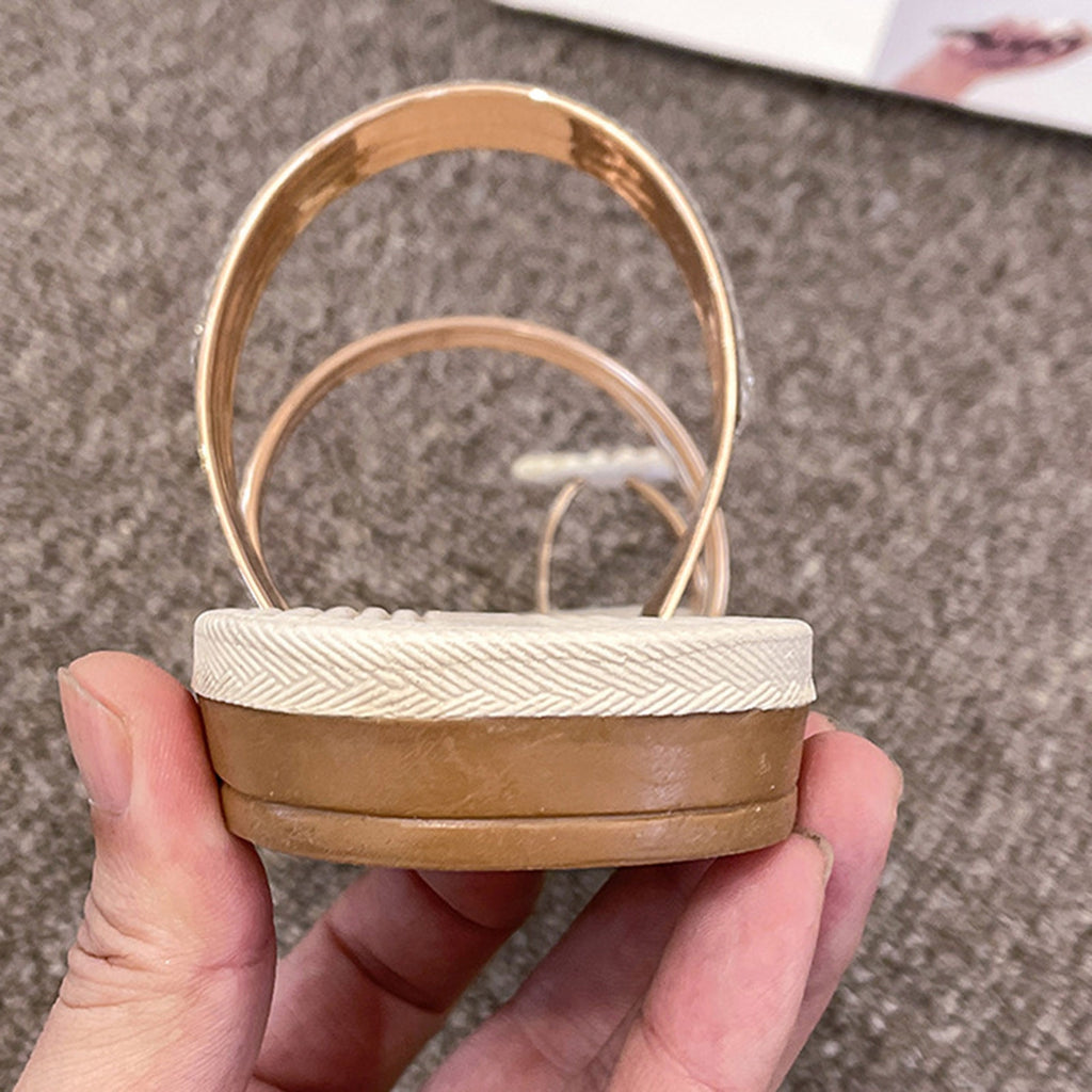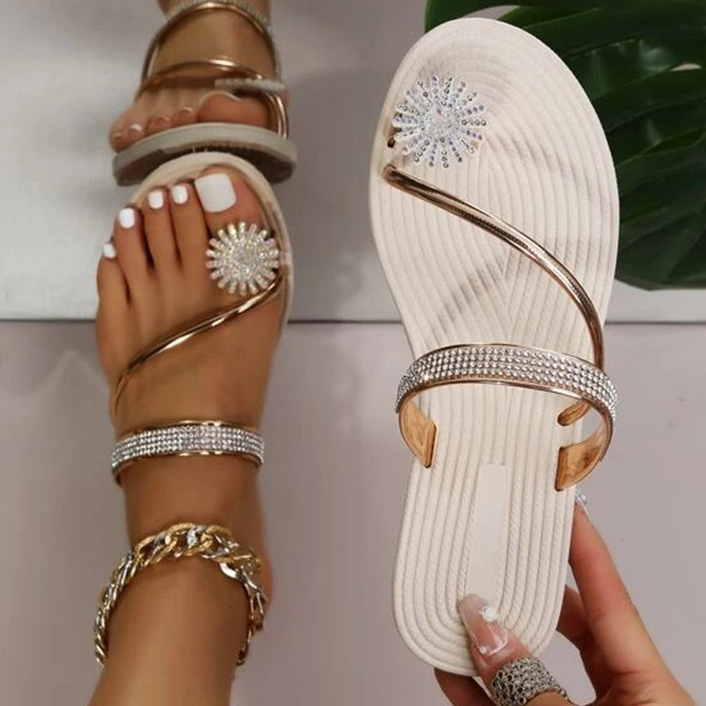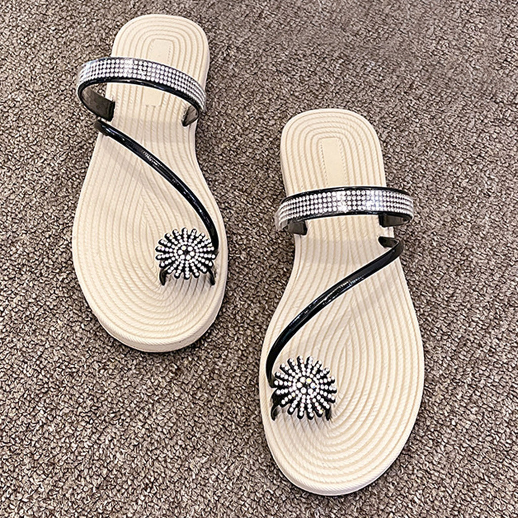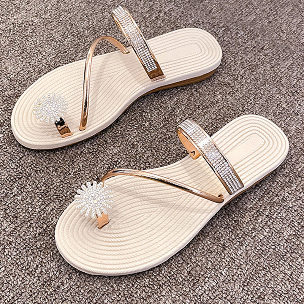Pearl Set Toe Elastic Sandals Flat Strap Slippers