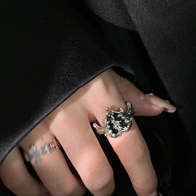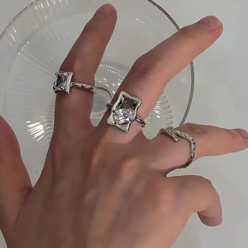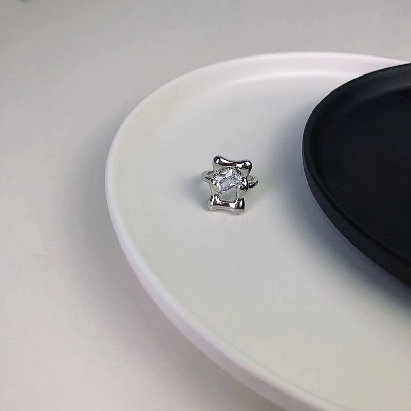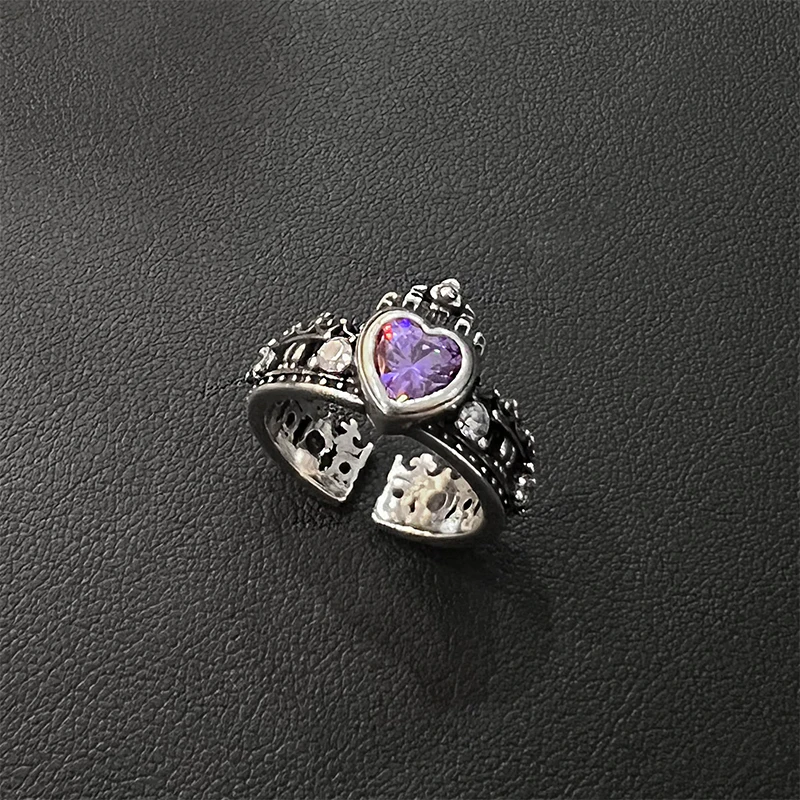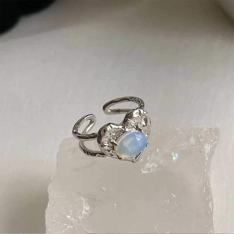 Pink Crystal Irregular Heart Ring Y2K Creative Blue Opal Broken Heart Ring