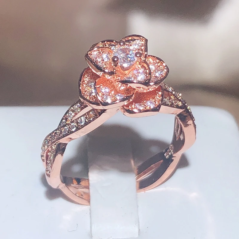 925 Sterling Silver InterTwined Three-Dimensional Rose Ring White Zircon Full Diamond Ring Ladies Temperament Elegant Jewelry