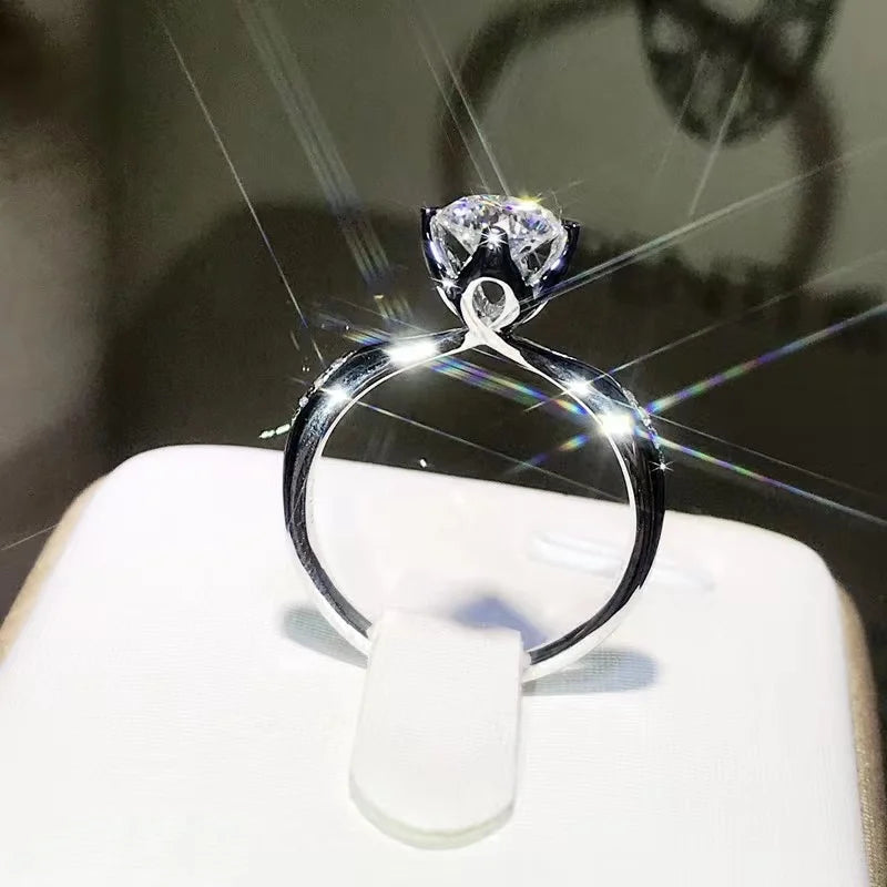 Silver Tone Ring 1 Carat Diamond Gemstone Bizuteria Jewelry Anillos De Wedding Diamant Rings Wholesale