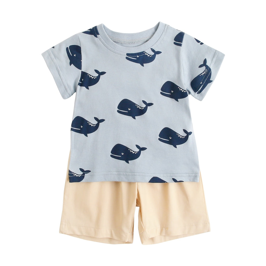 Sanlutoz Cartoon Boys Clothing Sets Summer Short Sleeve Cotton Baby Tops + Baby Shorts 2Pcs Casual