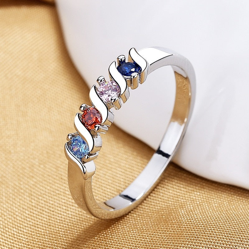 Luxury Multicolor Eternity Promise CZ Crystal Zircon Ring