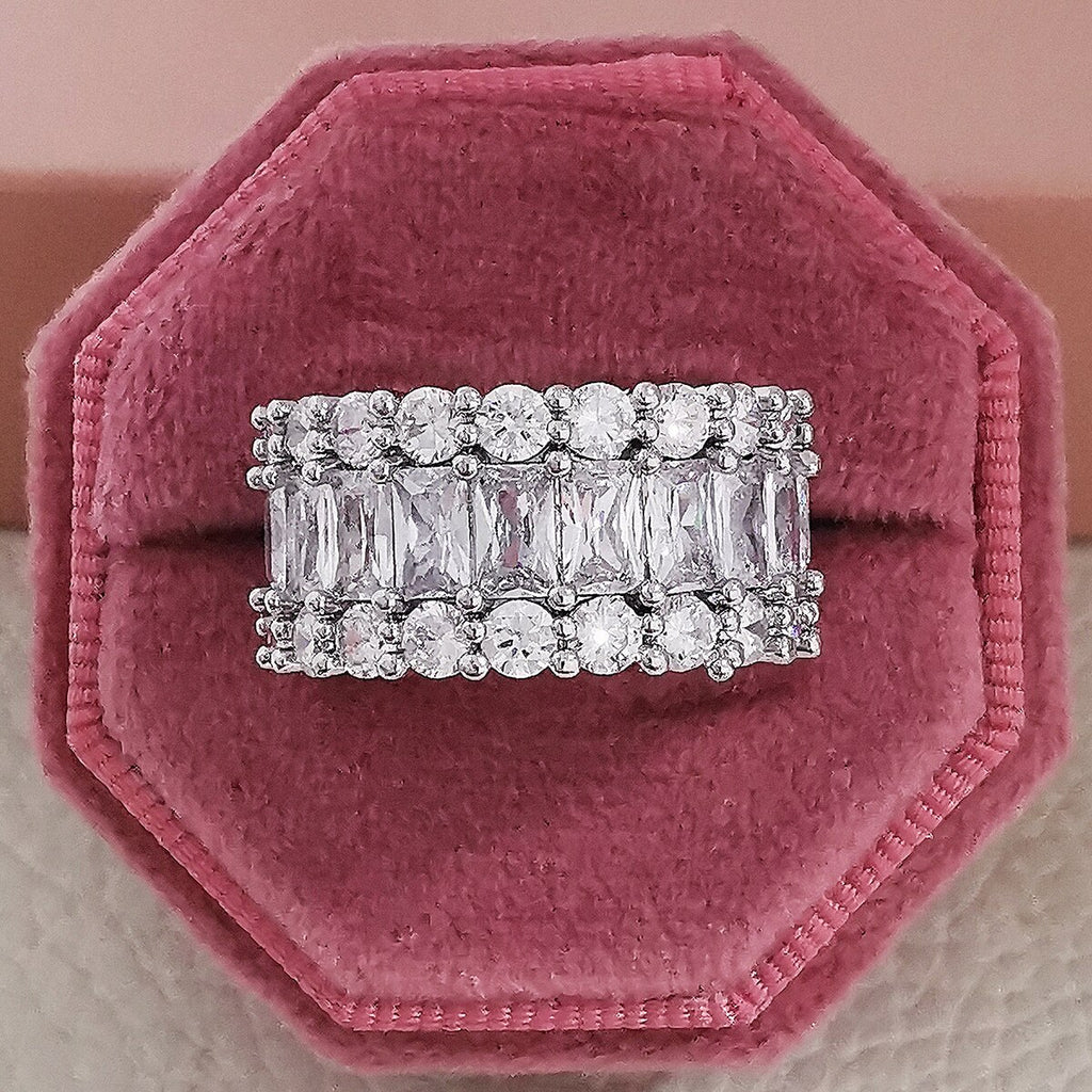 Luxury Rose Gold Silver Color Big Wheel Band Eternity Ring