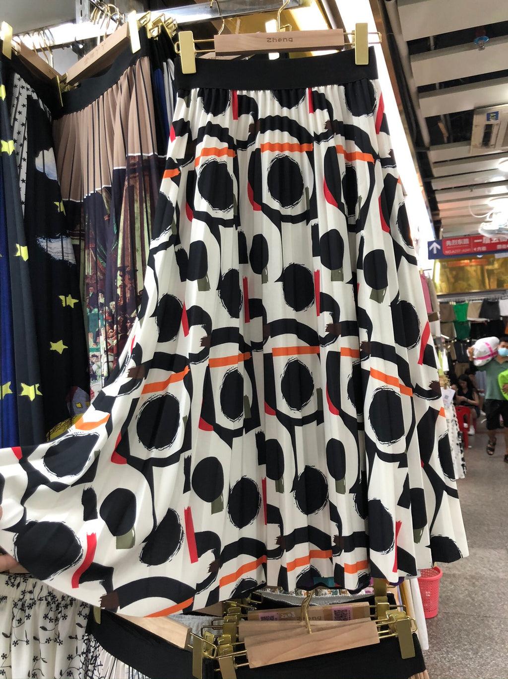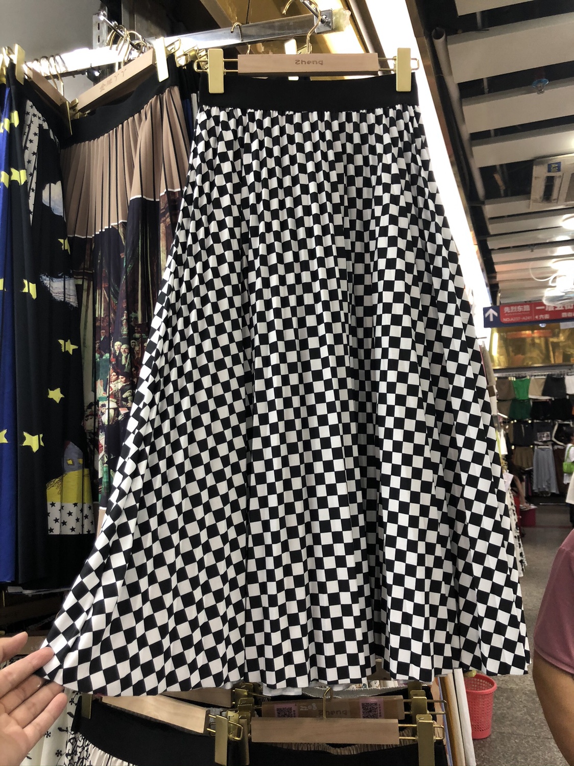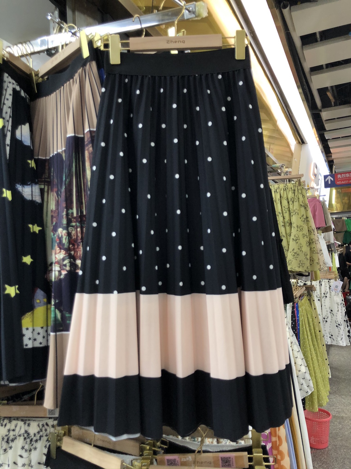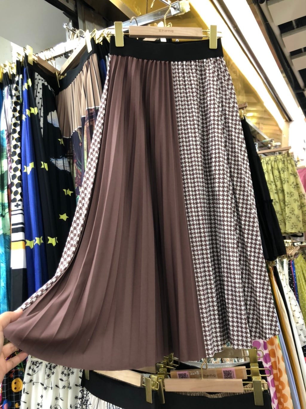 Fashion Retro Contrast Color Mid Length Long Length Pleated Skirt