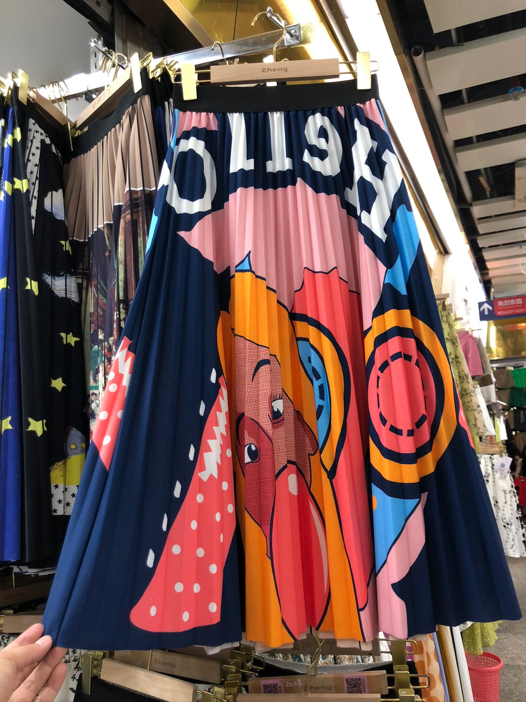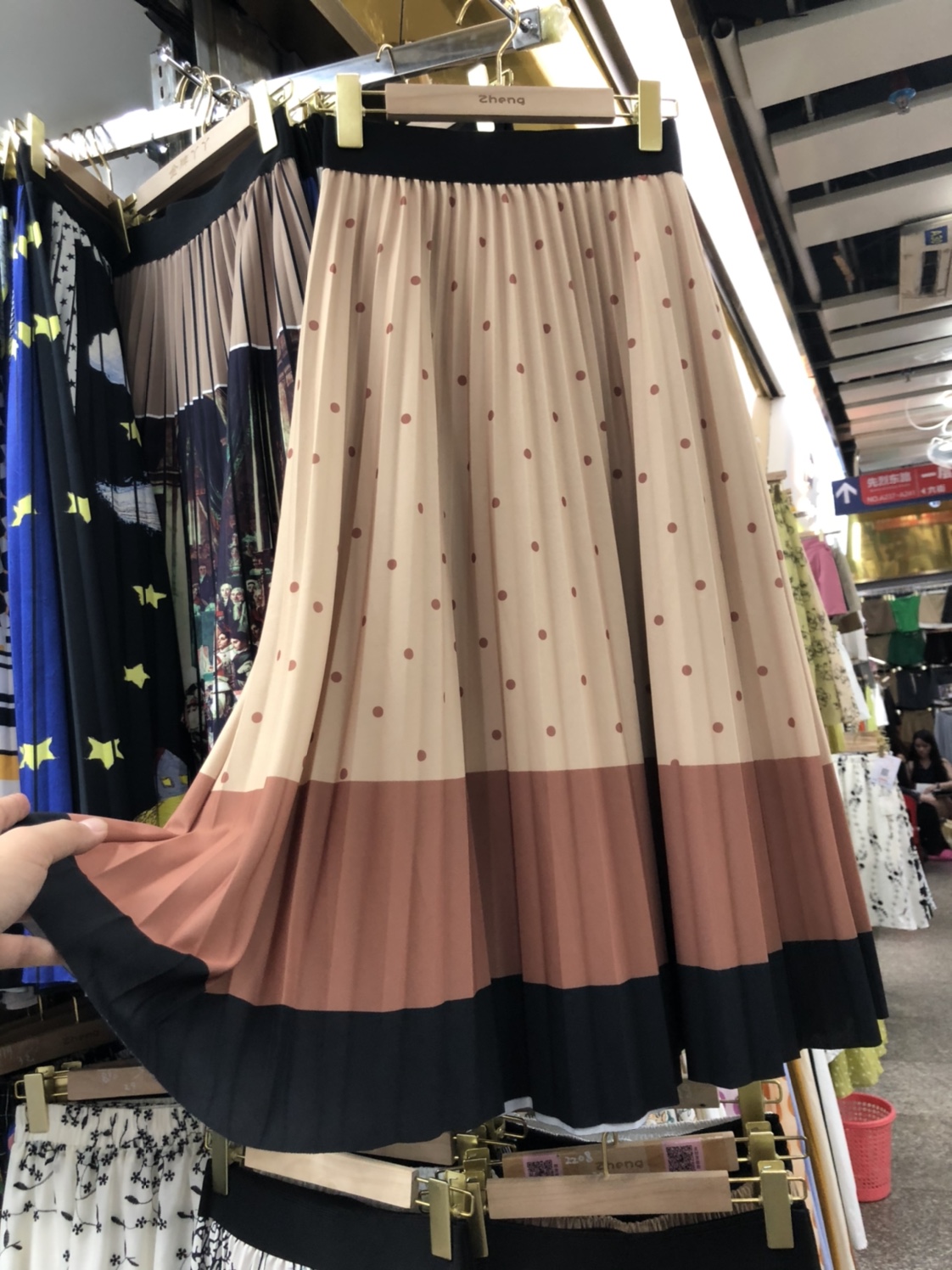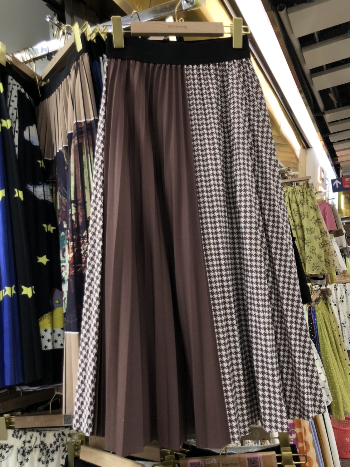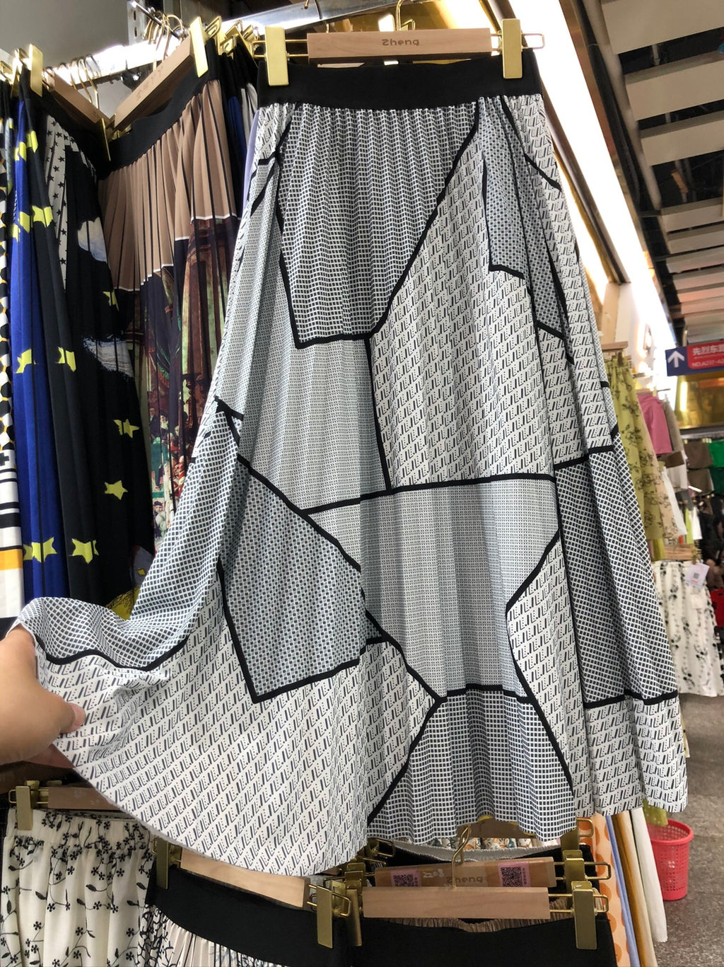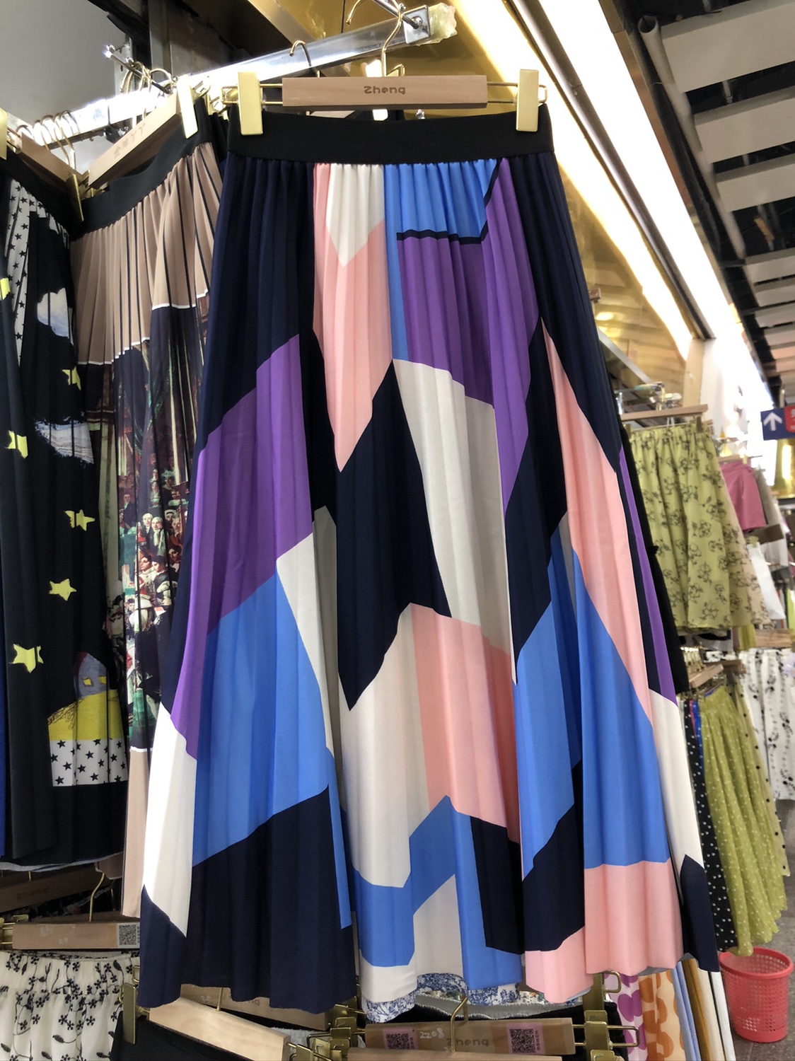 Fashion Retro Contrast Color Mid Length Long Length Pleated Skirt