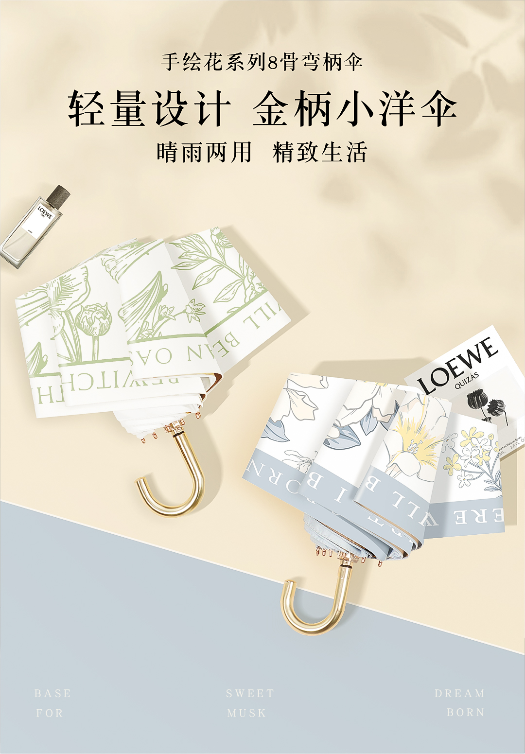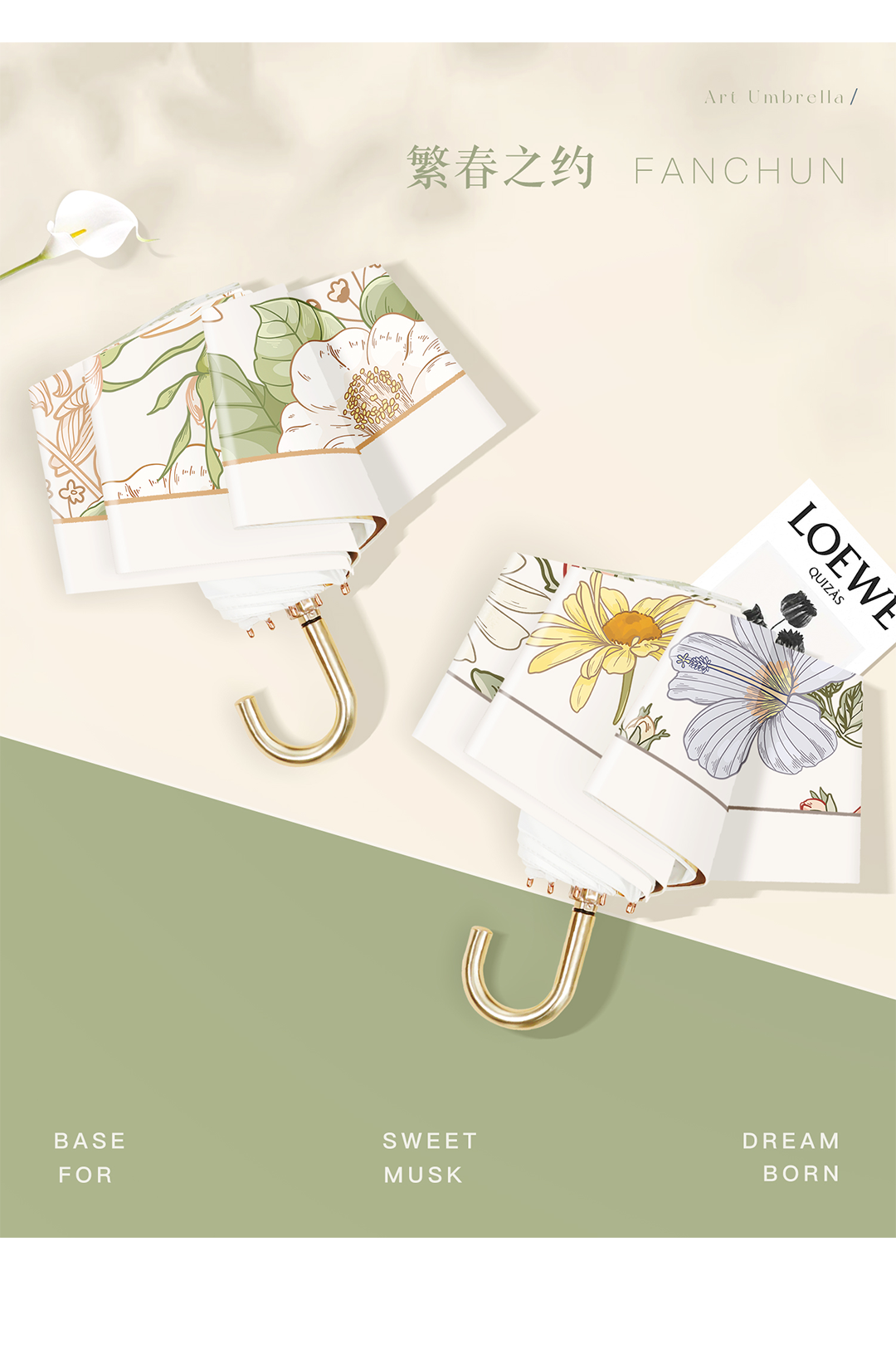 Five-Fold Mini Sun Umbrella Sun Protection UV Protection Umbrella Women's All-Weather Umbrella Dual-Use Good-looking Umbrella Small Portable
