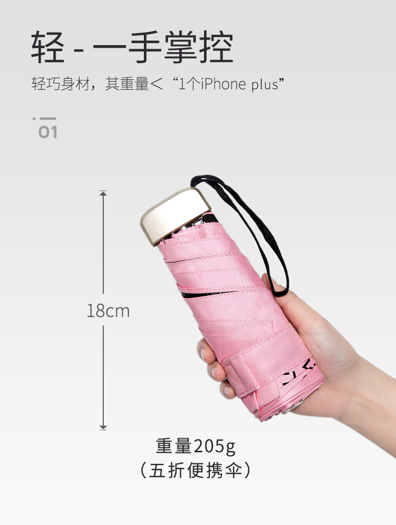 Five-Fold Umbrella Women's Sunny and Rain Dual-Use Umbrella Mini Foldable Sun Protection UV Protection Ultra-Small Portable Sun Umbrella