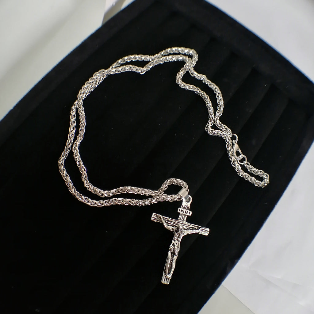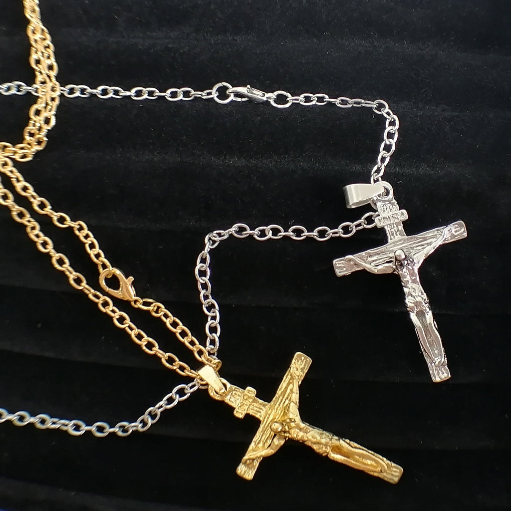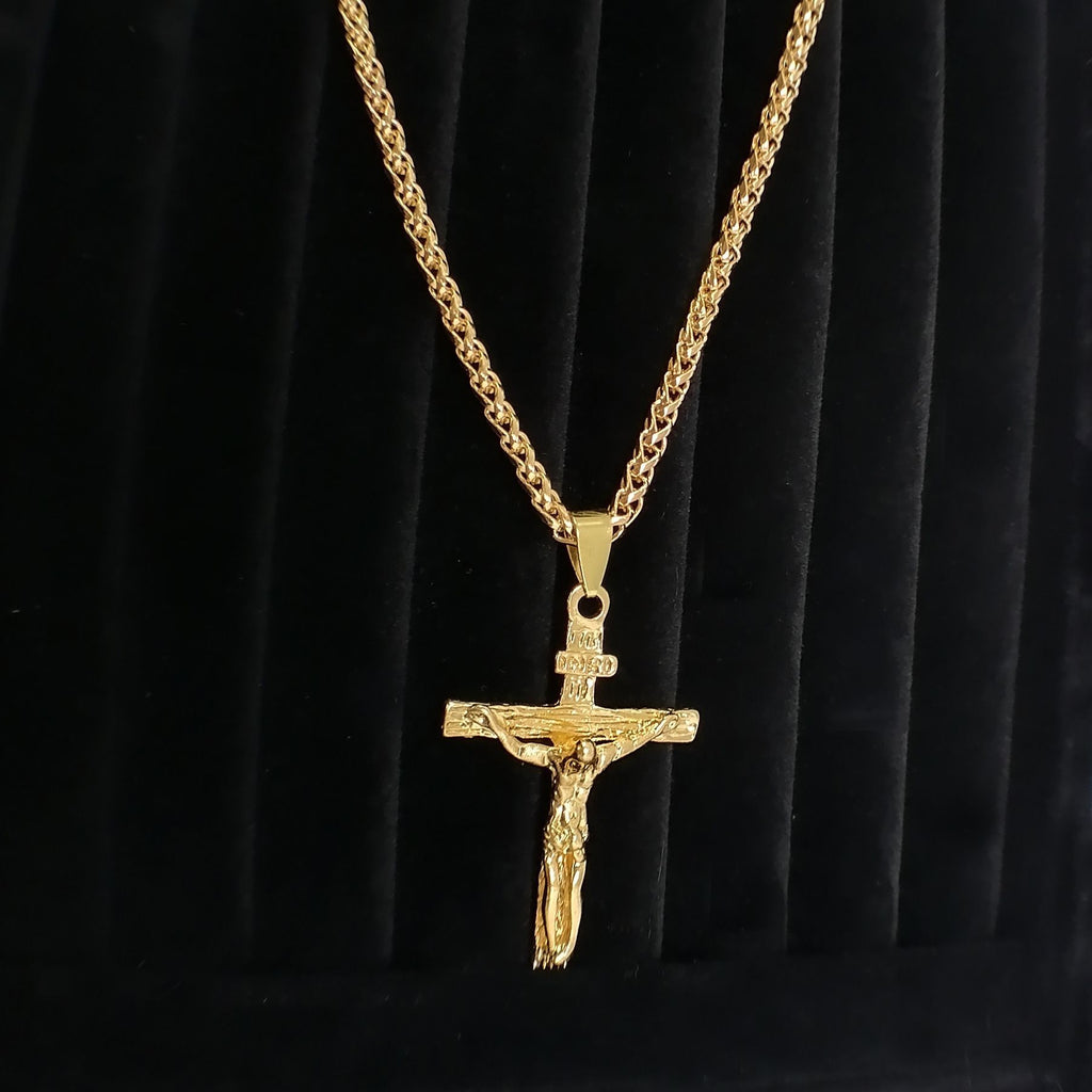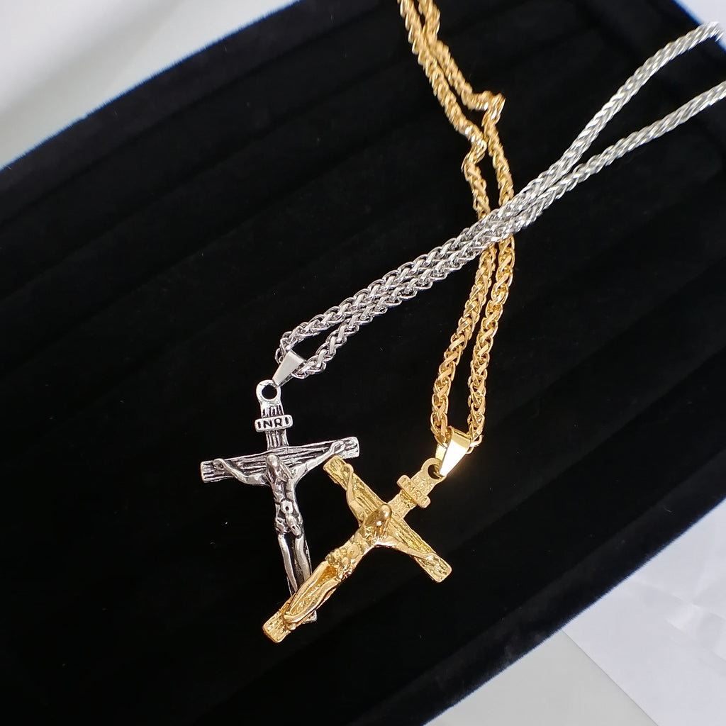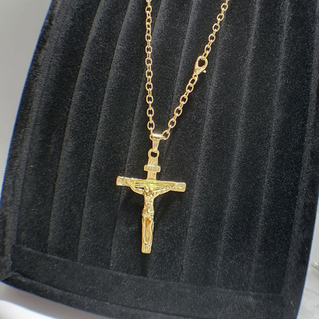 Hot Sale Religious Christian Jewelry Gold Color Crucifix Jesus Cross Pendant hip-hop keel chain necklace for men