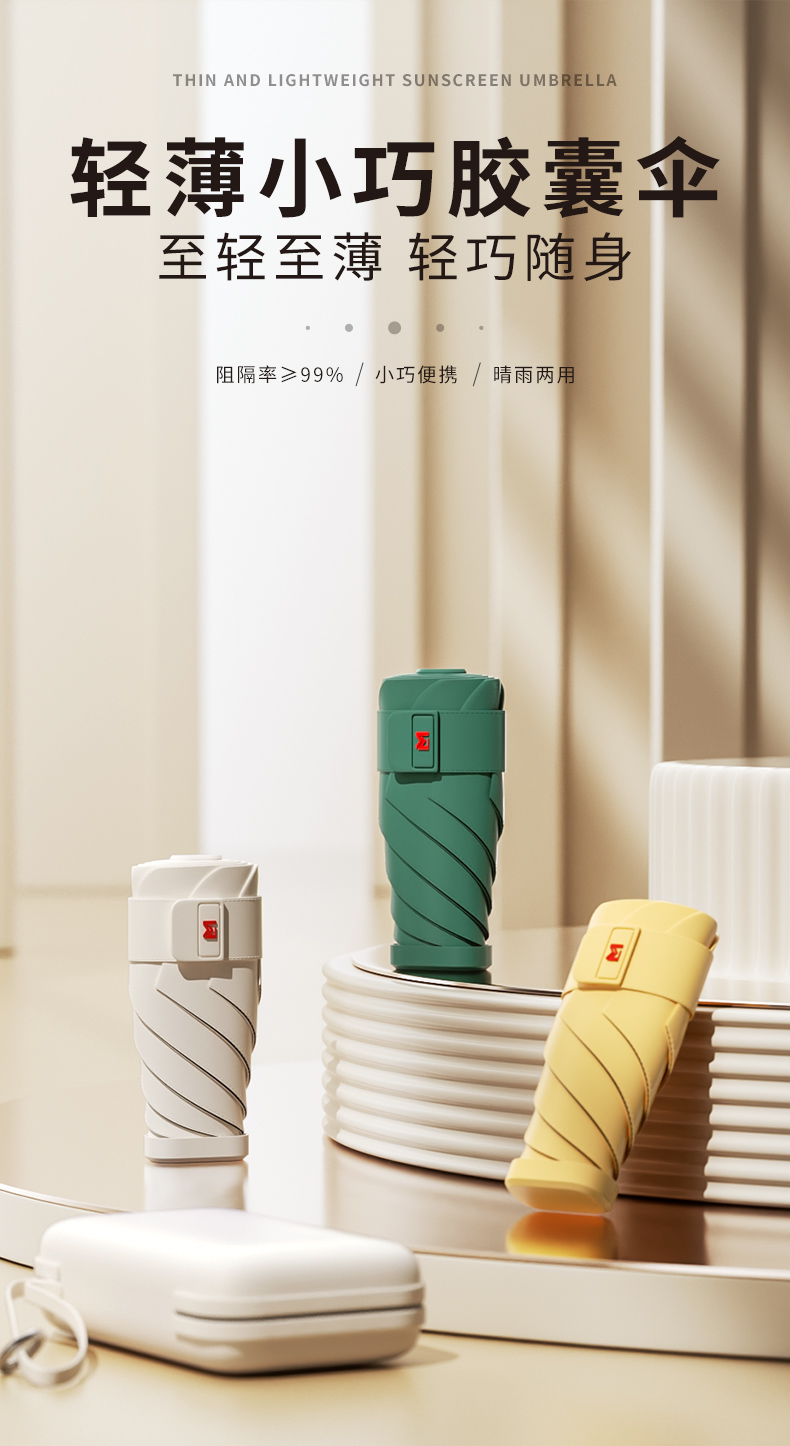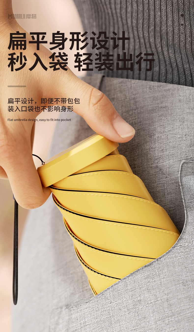Mohunting Flat Six-Fold Sun Umbrella UV-Proof Sun Women's Sunny and Rain Dual-Use Small Portable Card Parasol Capsule