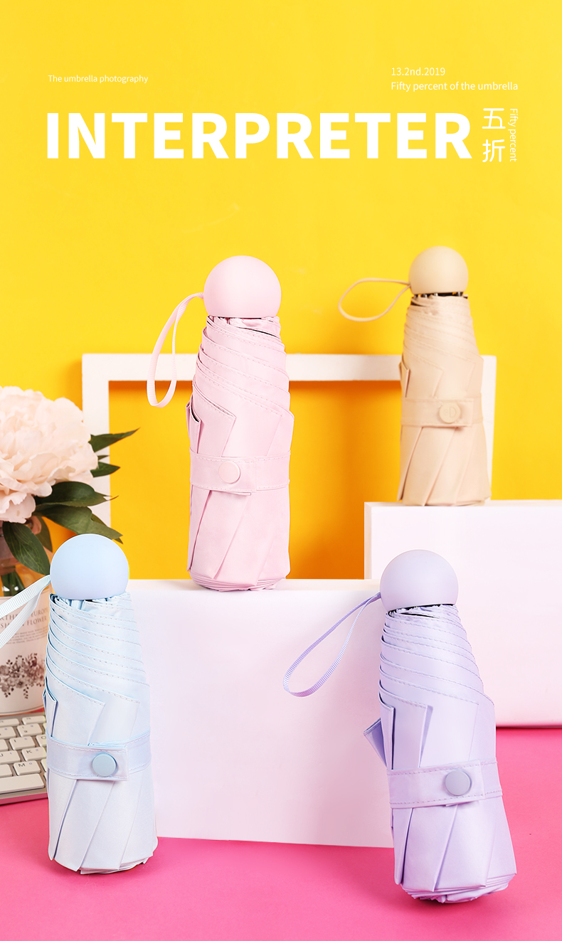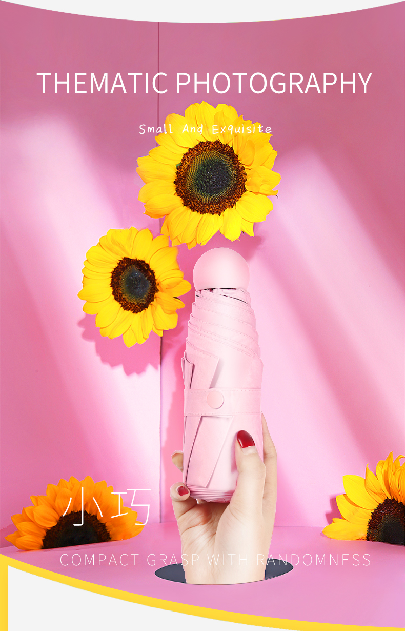 Sun Umbrella Small Sunscreen Anti-UV Women Portable Rain S Umbrella Sunny and Rain Dual-Use Foldable Capsule Five-Fold Umbrella Sunshade