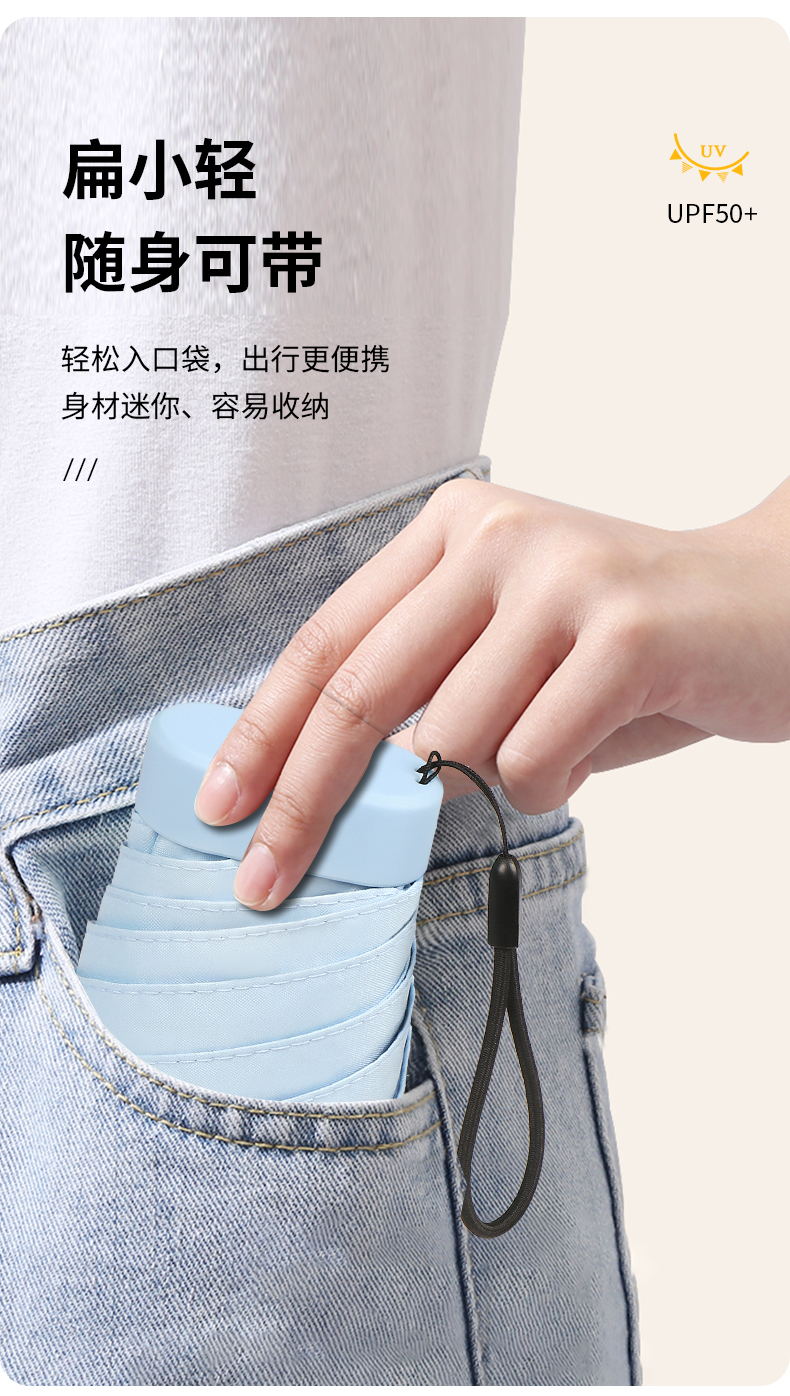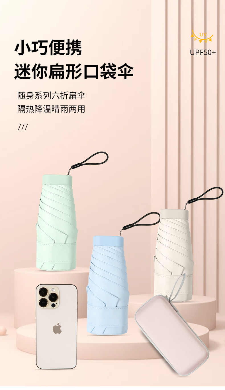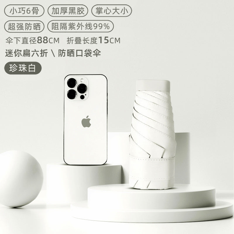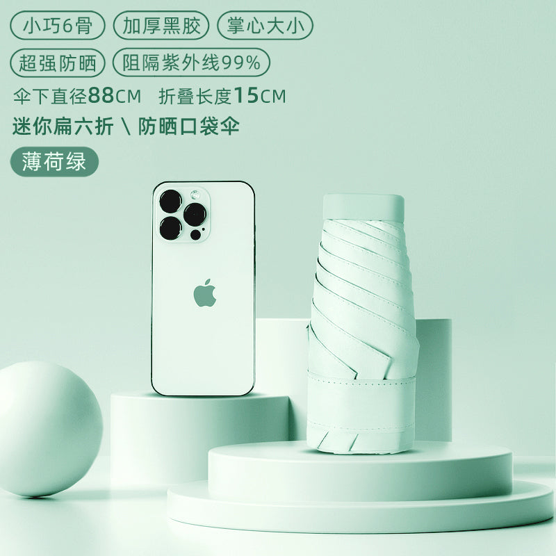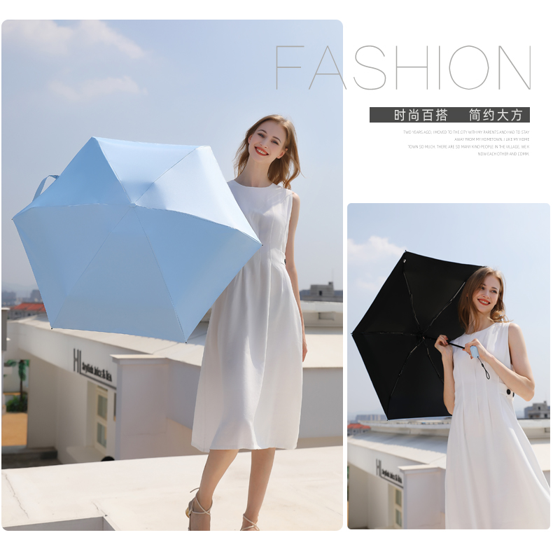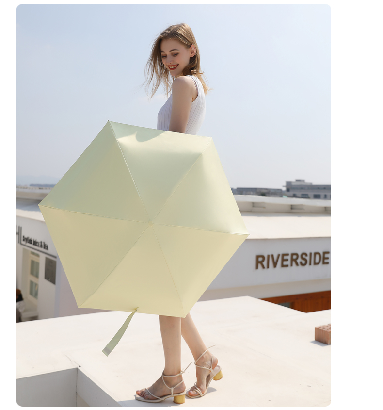 Ultra-Light Mini Small Portable Flat Six Foldable Five-Fold Sun Protection Super Strong UV Protection Sunshade Pocket Sun Umbrella for Women