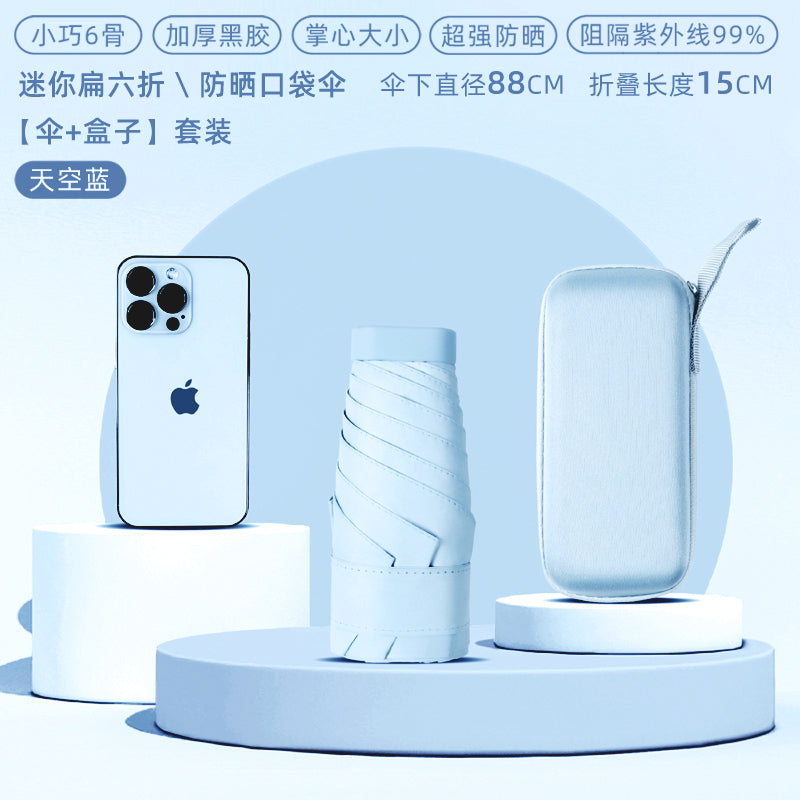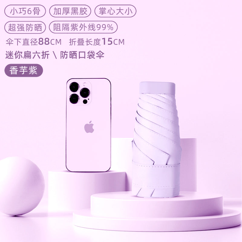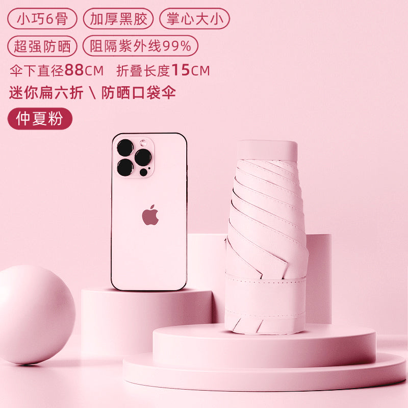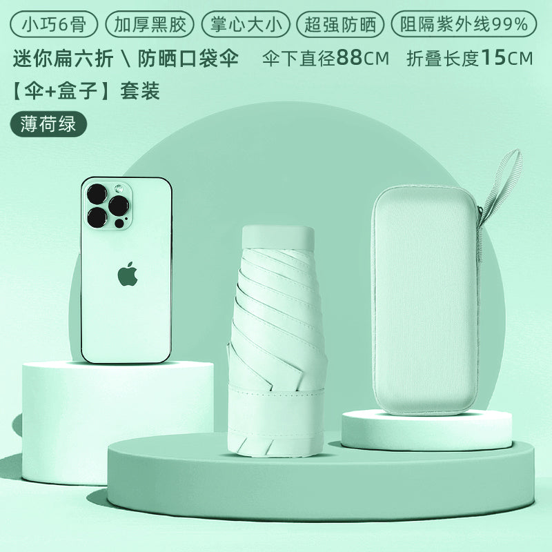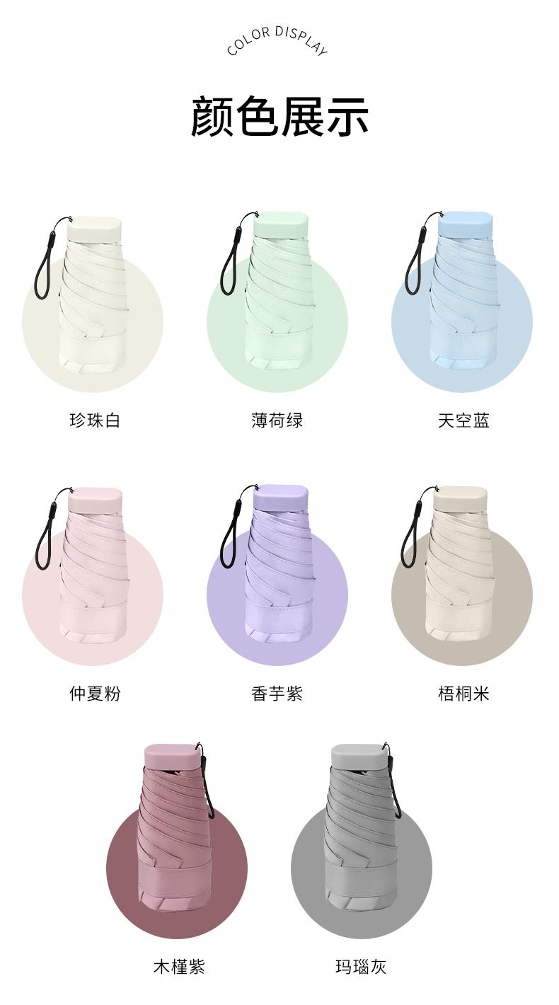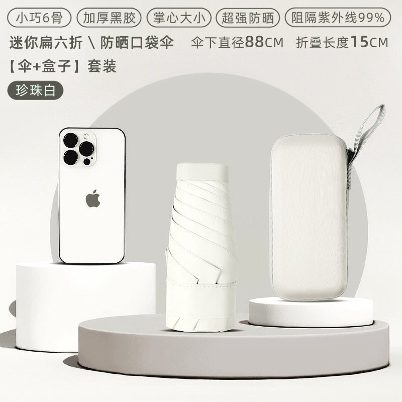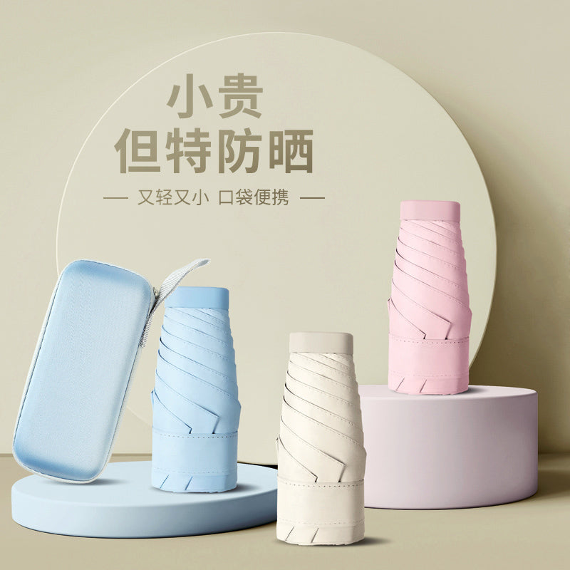Ultra-Light Mini Small Portable Flat Six Foldable Five-Fold Sun Protection Super Strong UV Protection Sunshade Pocket Sun Umbrella for Women