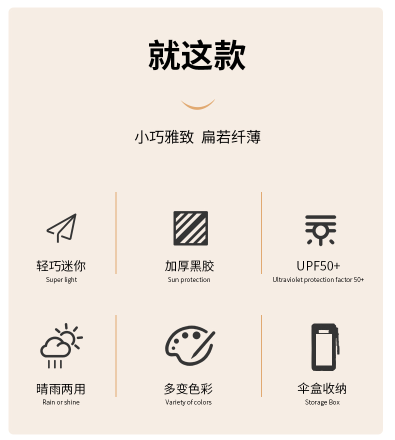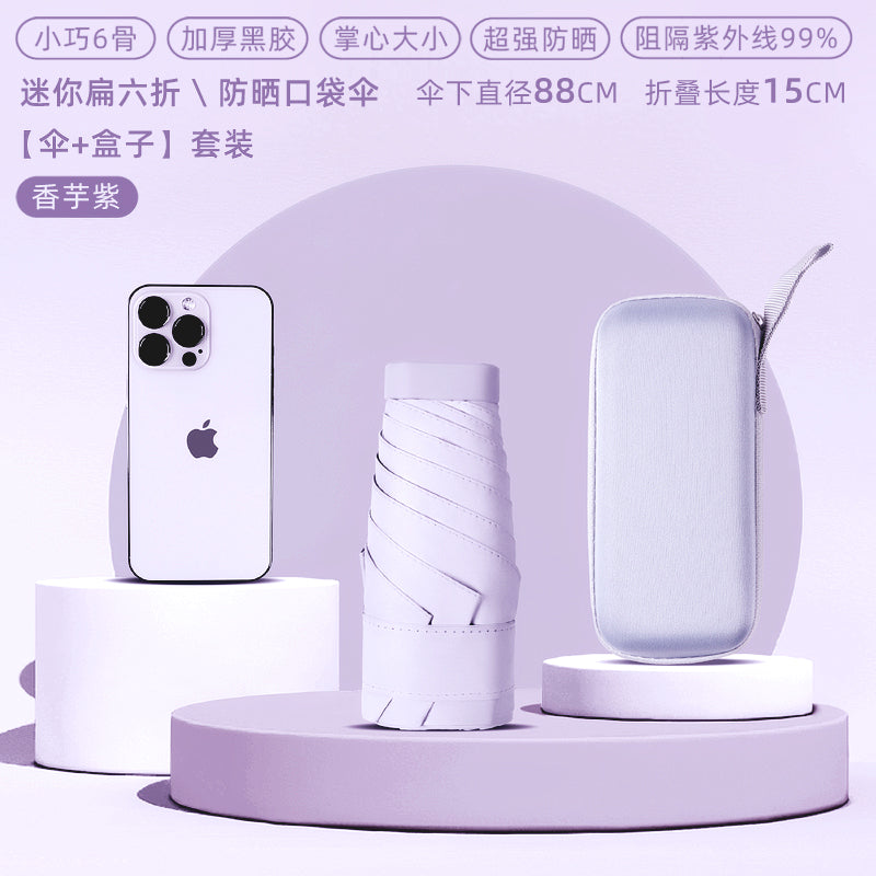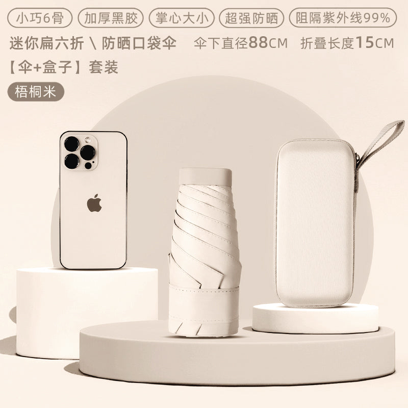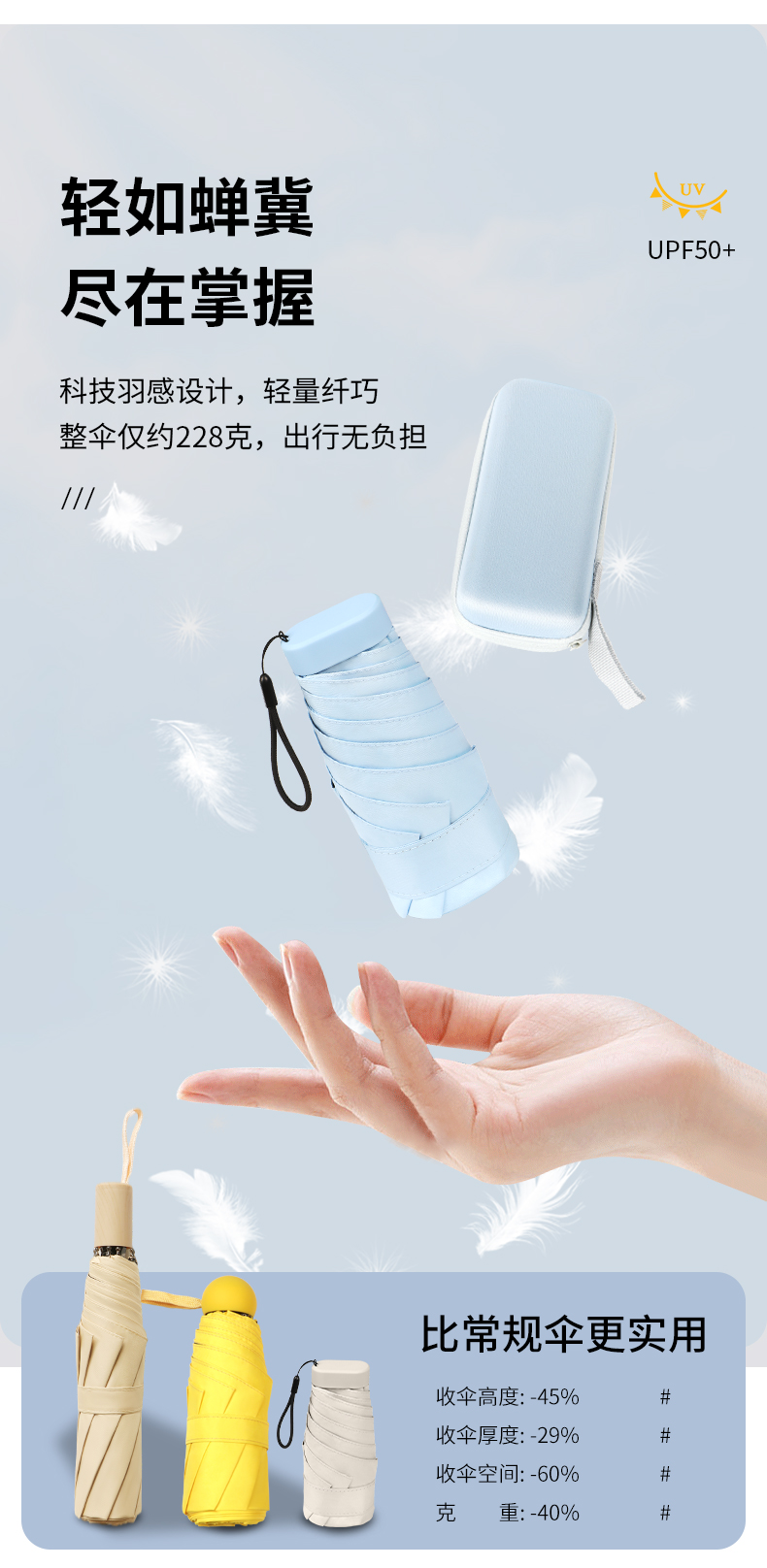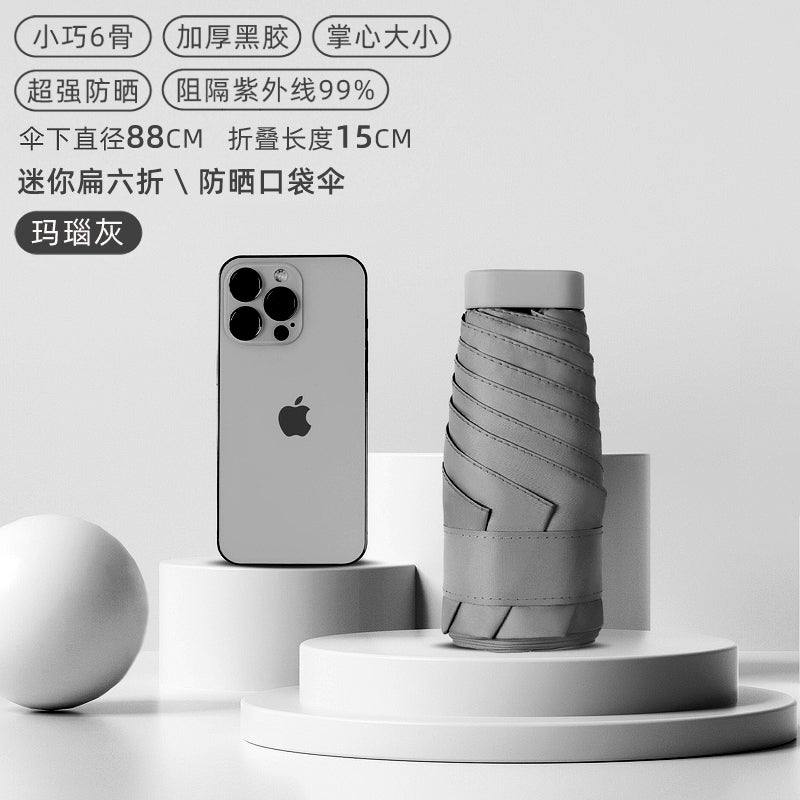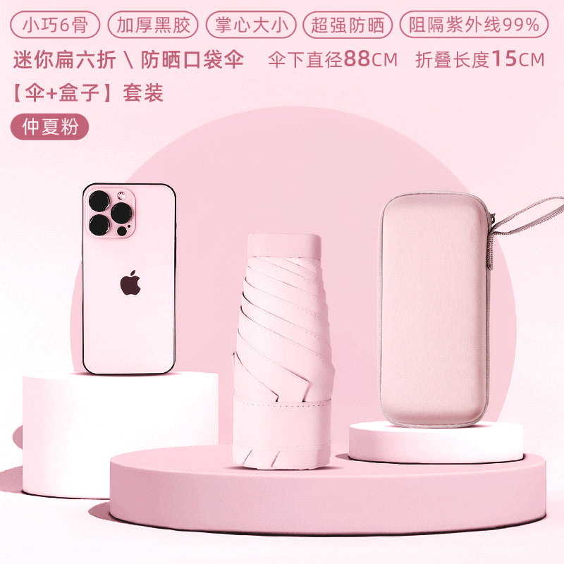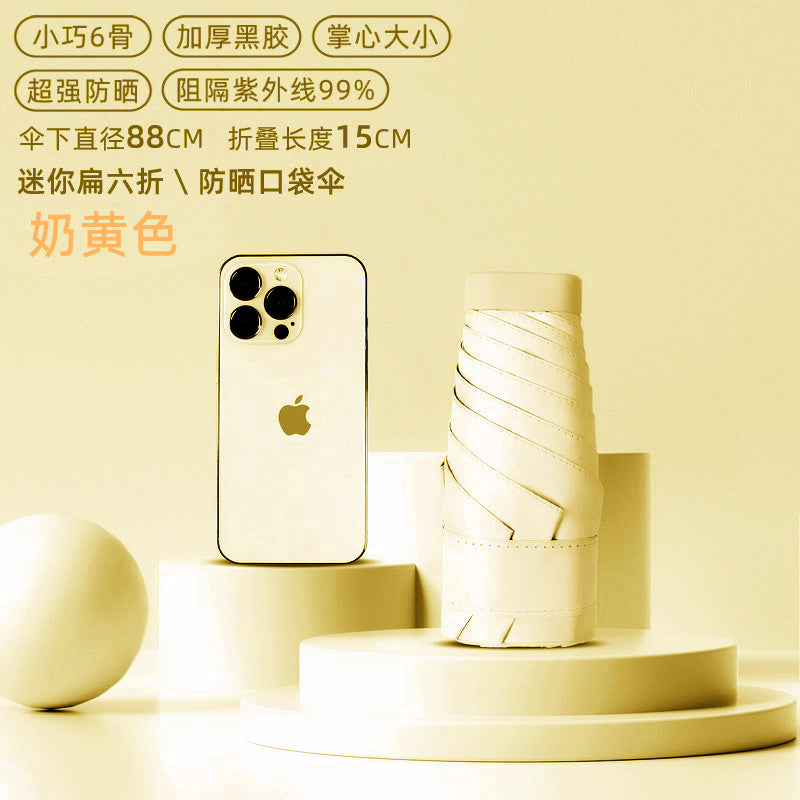Ultra-Light Mini Small Portable Flat Six Foldable Five-Fold Sun Protection Super Strong UV Protection Sunshade Pocket Sun Umbrella for Women