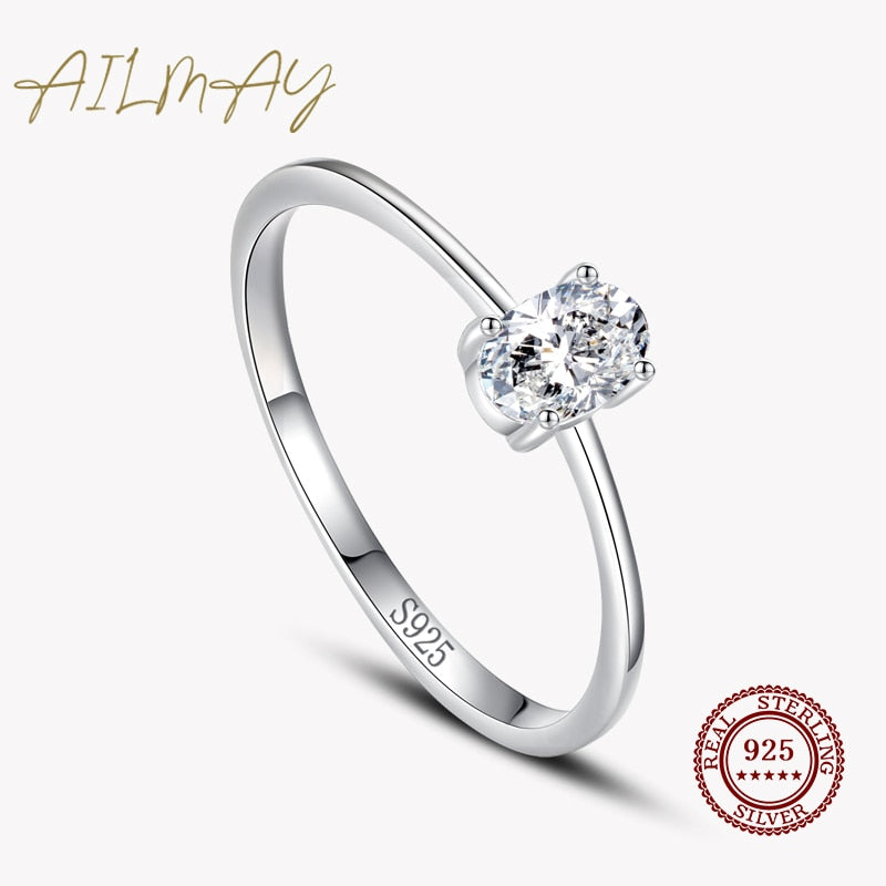 Ailmay Real 925 Sterling Silver Simple Oval Zirconia Ring
