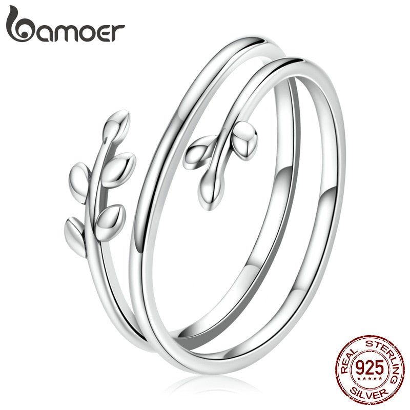 Bamoer 925 Sterling Silver Leaves Adjustable Ring