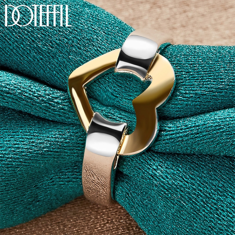 DOTEFFIL 925 Sterling Silver Gold Heart Ring