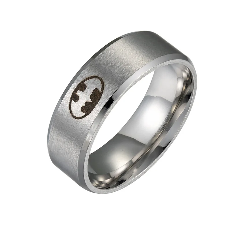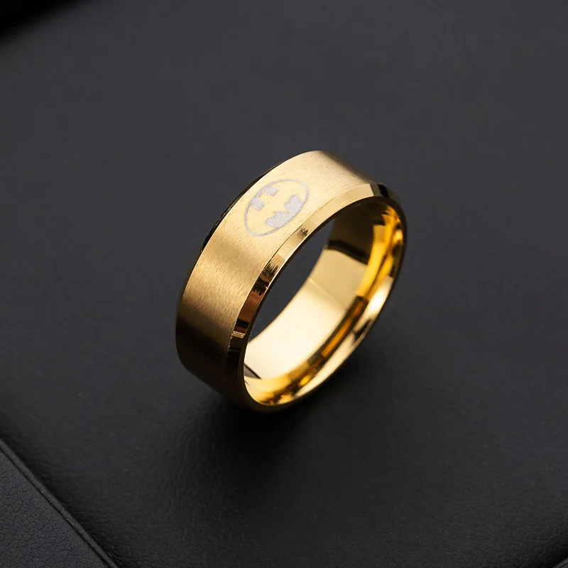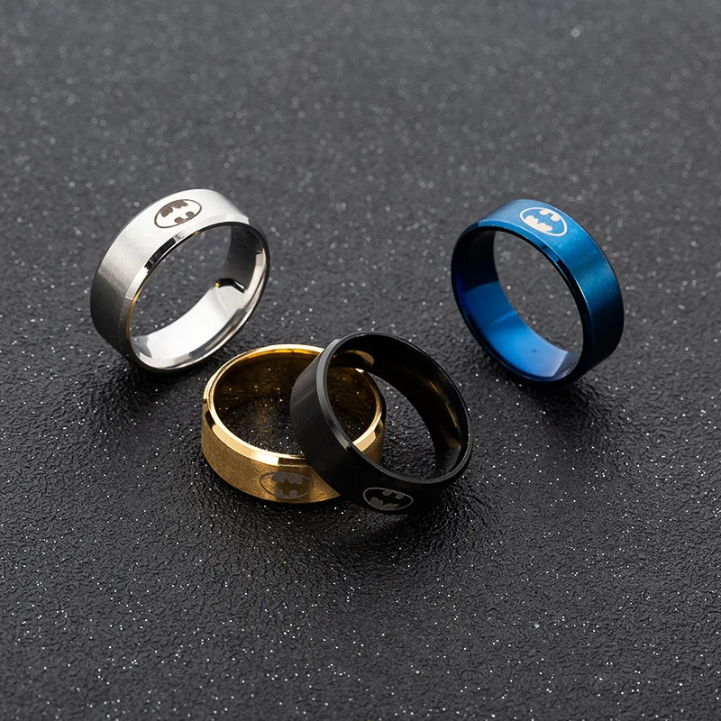 Fashion Laser Logo Bat Rings Stainless Steel for Men