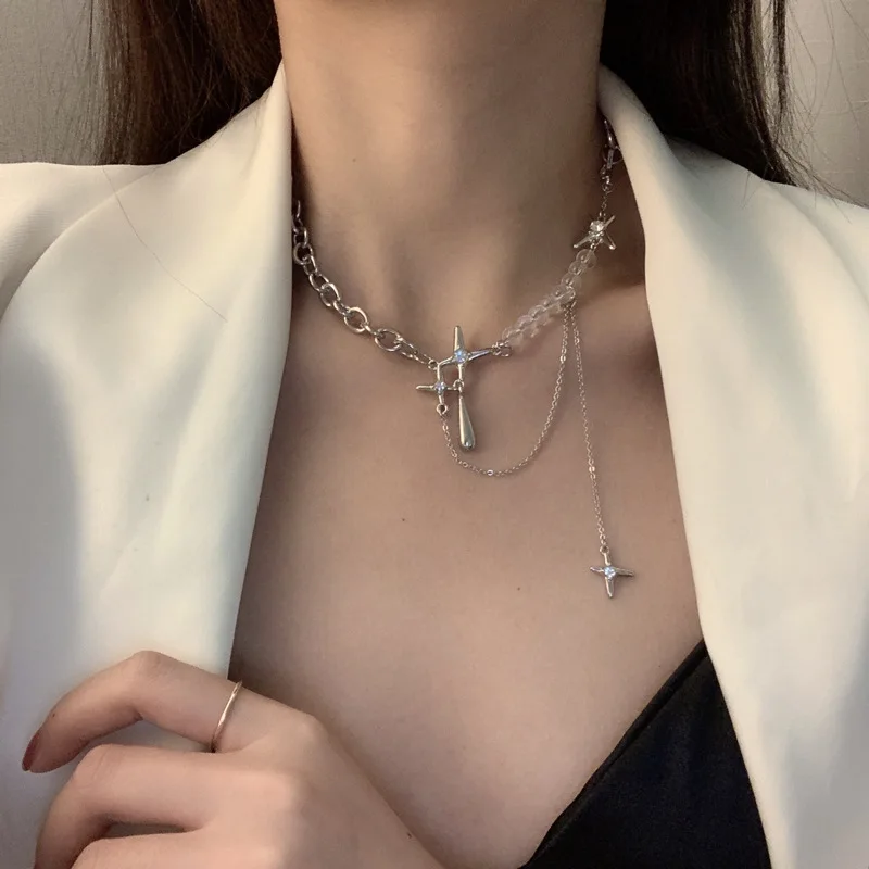 Y2K Zircon Crystal Beads Tassel Necklace