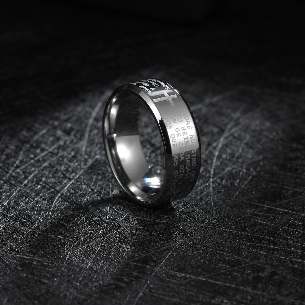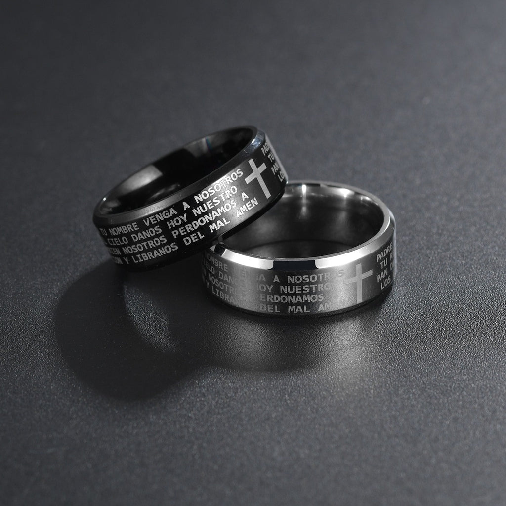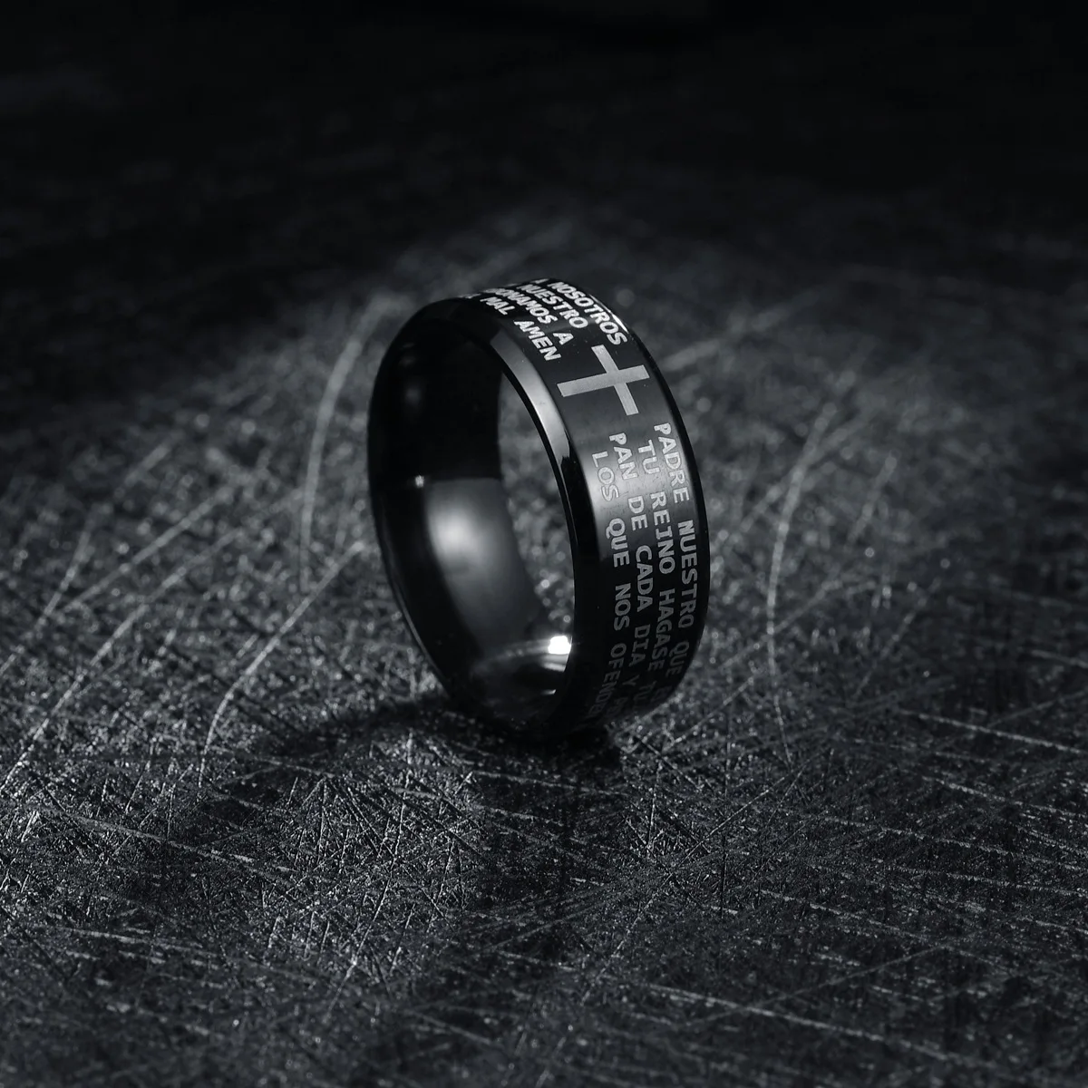 Stainless Steel Black Color Jesus Cross Ring Letter Bible Verse Ring