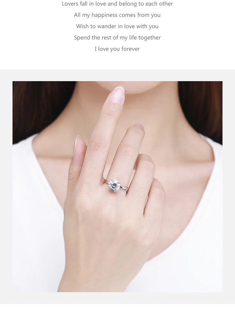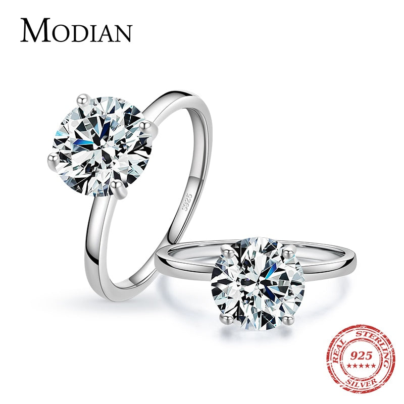 Modian 100% Real 925 Sterling Silver Classic Clear 3CT CZ Finger Ring