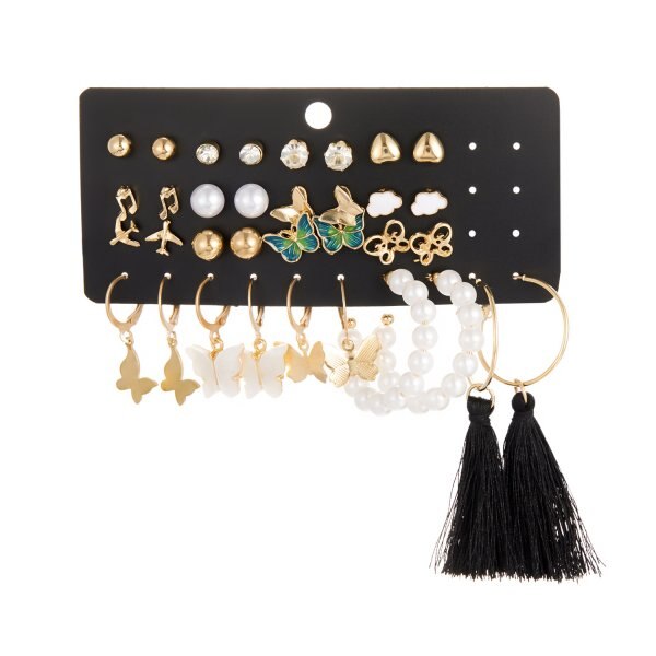 New Korean Elegant Cute Butterfly Stud Earrings For Women Girls Simple Lovely Vintage Rhinestone Butterfly Wings Star Ear Studs