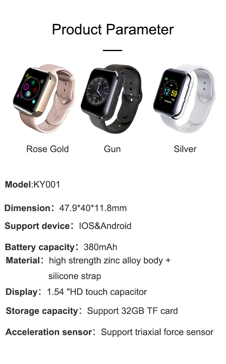 New KY001 SmartWatch Women big screen men Sport Fitness Music player SIM TF Card Smart phone watch for iOS Android