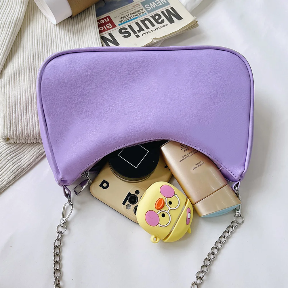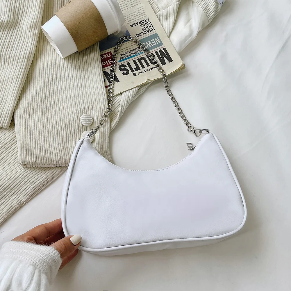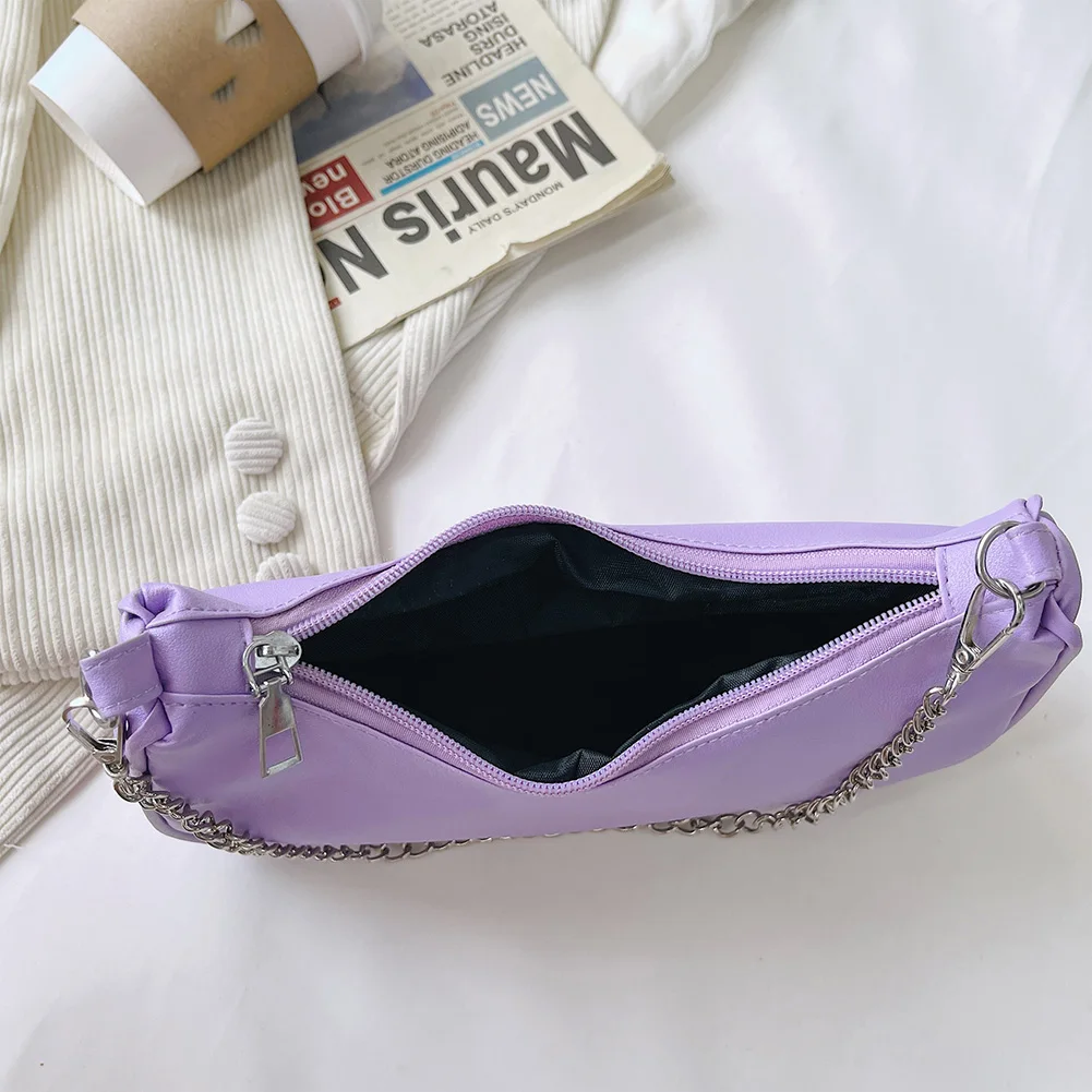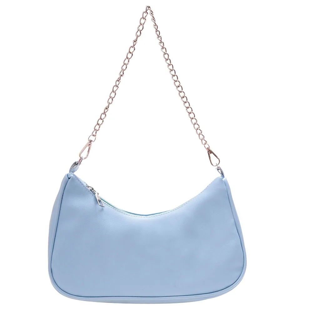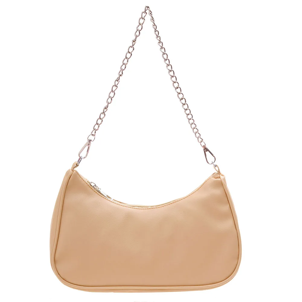 Feature: Ladies shoulder underarm bag. PU material, pure color and chain design. Fashion, stylish and durable.