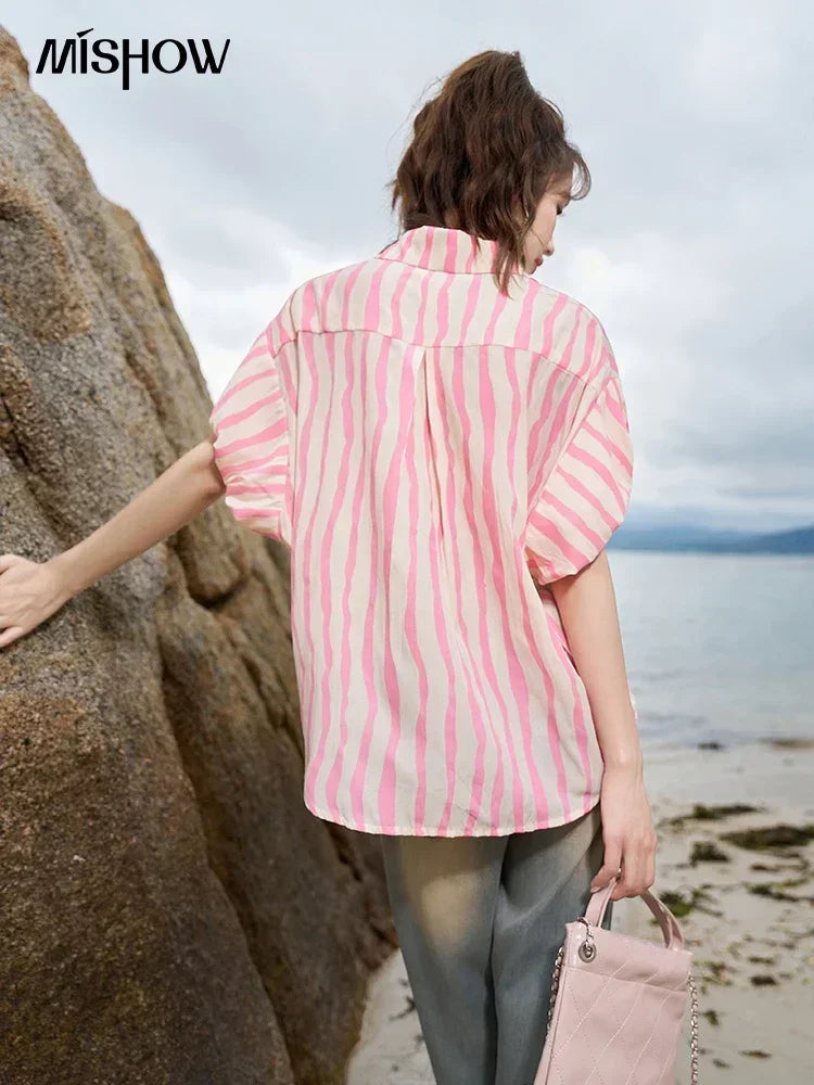 The refined striped pattern paired with a classic polo collar adds a smart, office-ready touch. Its tailored yet comfortable fit creates a clean silhouette suitable for formal and business-casual settings.