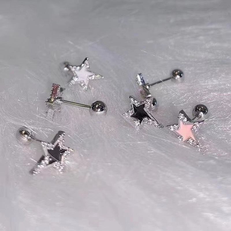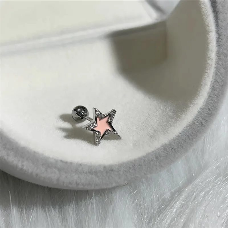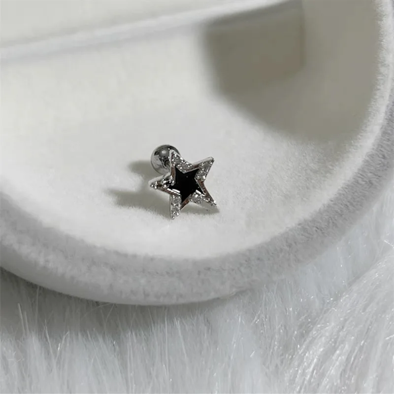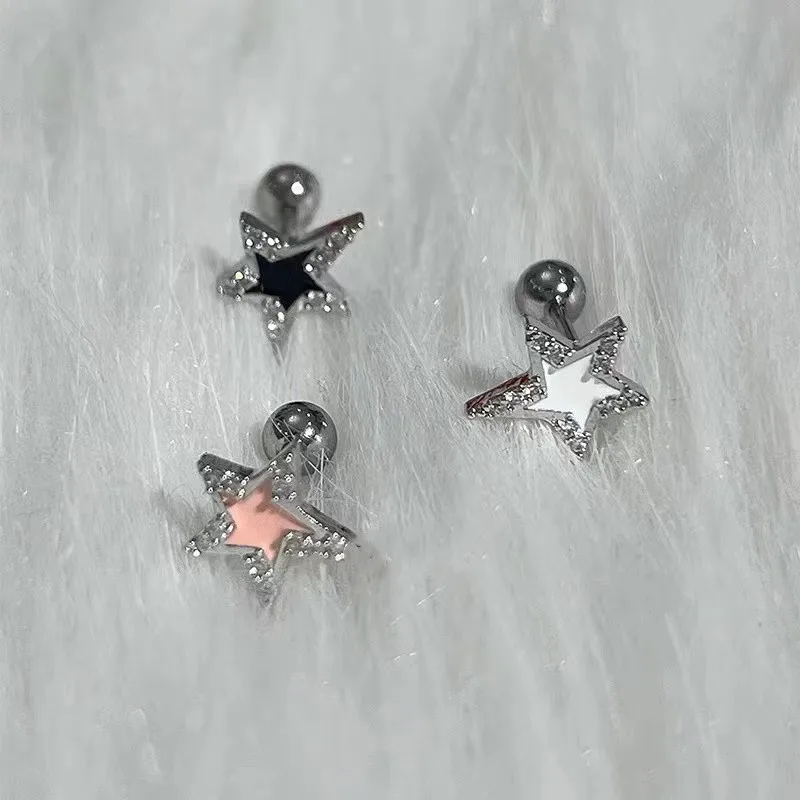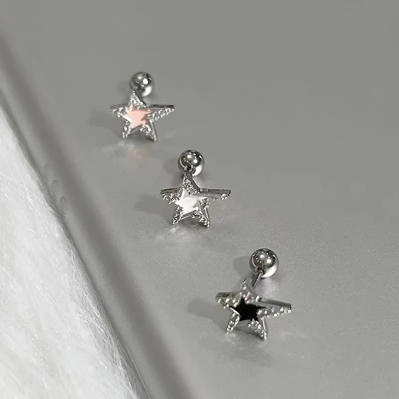Y2K Shinning Pentagram Star Stud Earring for Women Egirl 90s Black White Pink Helix Piercing Ear Bone Nail Jewelry Accessories