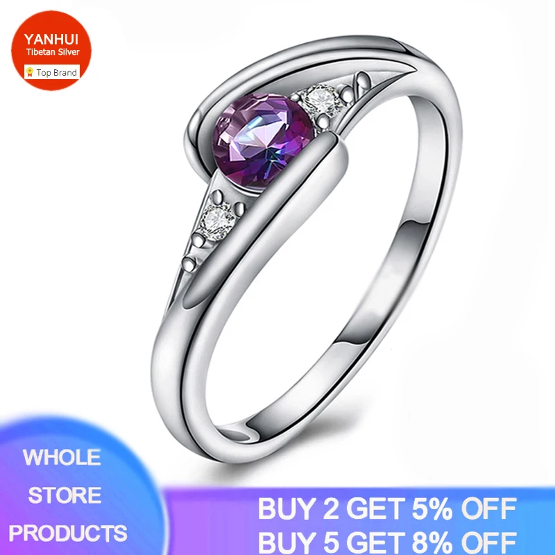YANHUI 100% Original Tibetan Silver 0.5ct Colorful Cubic Zirconia Ring
