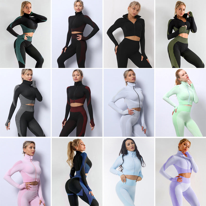 Yoga Crop Top Yoga Jackets Sports Bras For Fitness Leggings Gym Wear Women Sets Sportswear 3 Piece Set Women Apparel